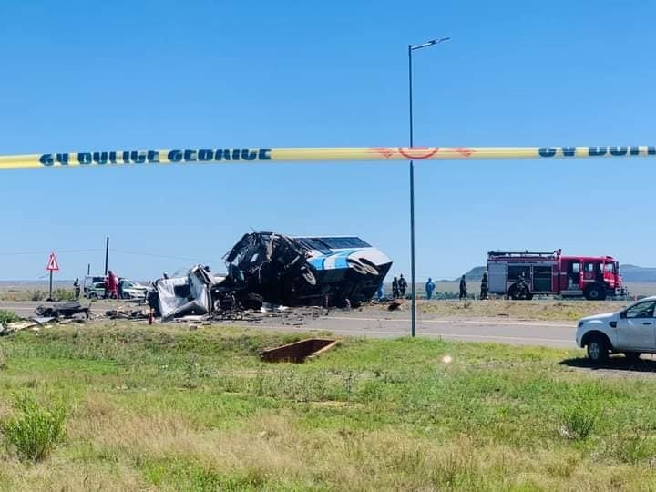 Mvambi said an initial investigation by the department revealed a tyre burst was to blame for the accident which occurred on the road between Steynsrus and Kroonstad. The vehicle was damaged beyond repair after it capsized.