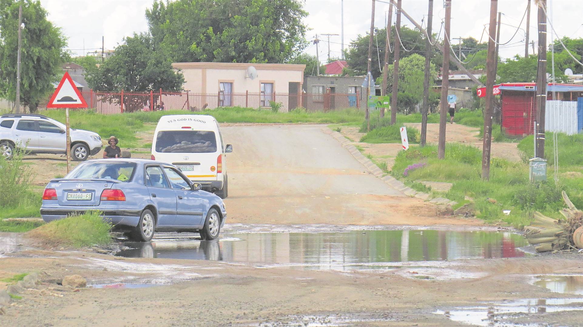 Motorists have been spotted driving cautiously on roadsides to avoid a dangerous sinkhole with stagnant raw sewage spillages in Turflaagte, Bloemfontein. This photo was taken on Friday (06/01). The road, which runs through ward 11 of the Mangaung Metro Municipality, connects traffic from the R702 Dewetsdorp road to residential areas that include Phelindaba, Rocklands and Freedom Square. The deteriorating condition of the road has seen community members recently placing stones and debris on the road, demanding that it be fixed. Photo: Teboho Setena