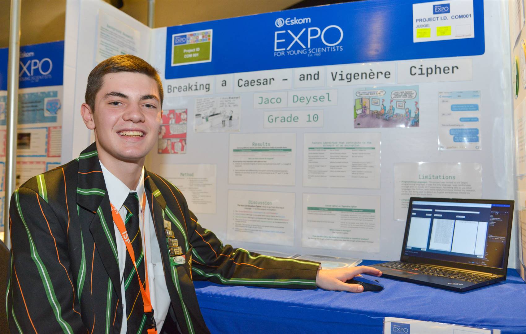 Johannes was chosen to compete in this international competition last year, when he was awarded a gold medal for his research science project at the Eskom Expo for Young Scientists.