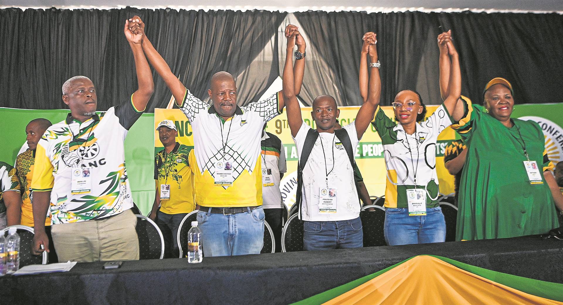 The incoming Free State ANC leadership elected on Sunday (22/01) are, from the left: Mxolisi Dukwana (chairperson), Ketso Makume (deputy chairperson), Poleliso Motsoeneng (secretary), Dibolelo Mahlatsi (deputy secretary) and Mathabo Leeto (treasurer). Photo: Mlungisi Louw