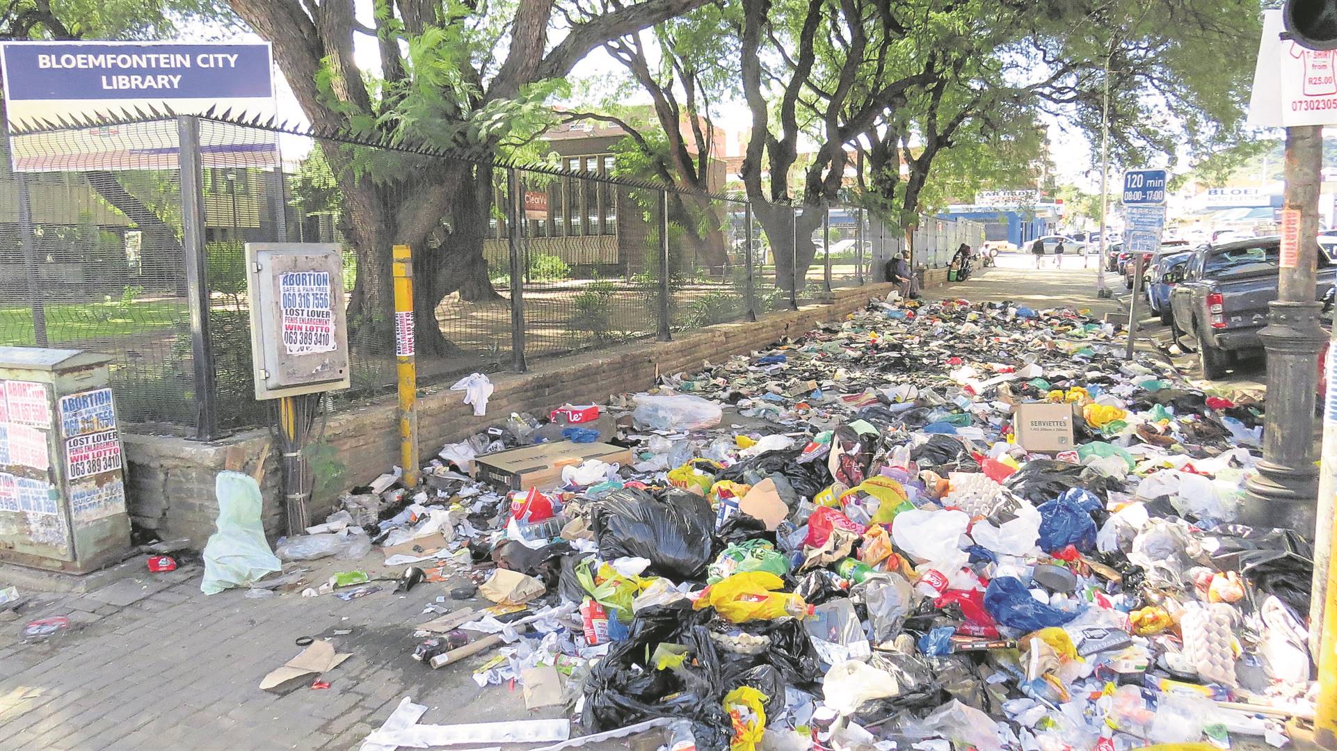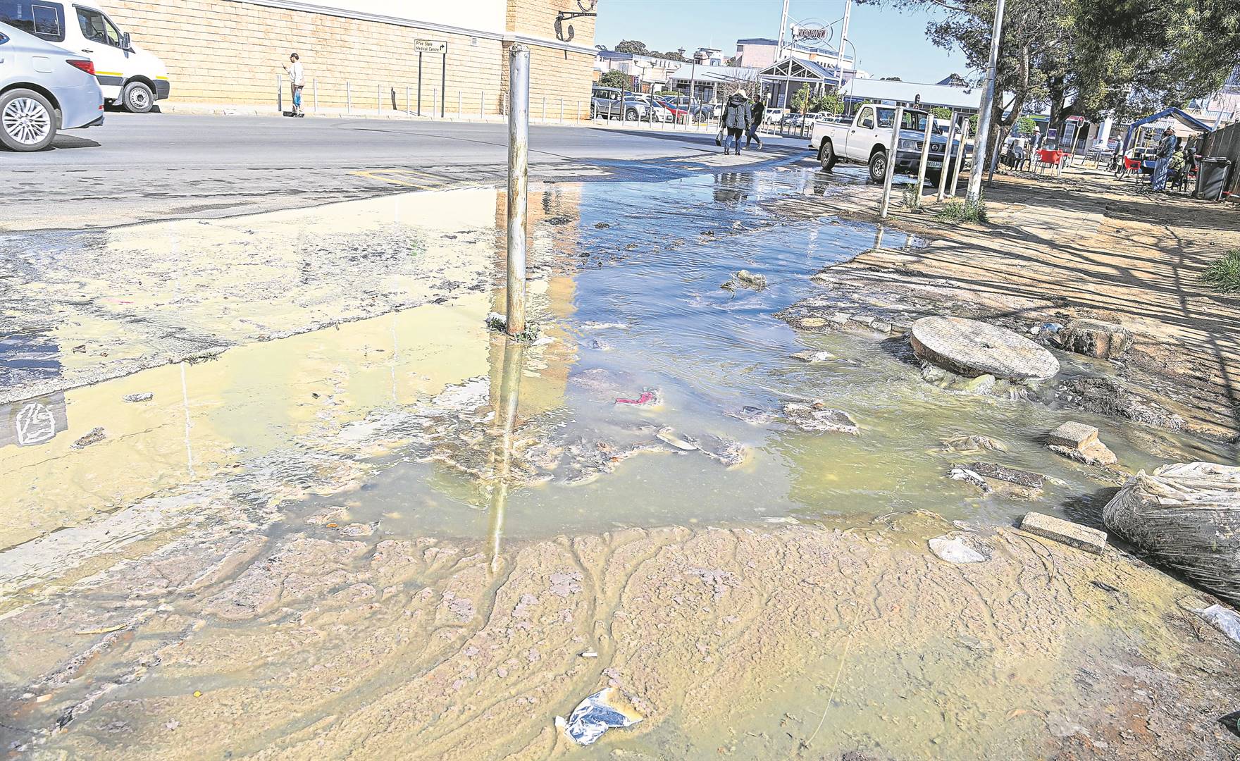Customers and business owners at Mimosa Mall and the Brandwag Centre in Bloemfontein are being forced to endure the stench of raw sewage spilling from a blocked manhole on Kellner Street. This has been flowing freely for weeks, with the street now resembling somewhat of a river due to spillages streaming into and along the storm drainage system.Photo: Mlungisi Louw