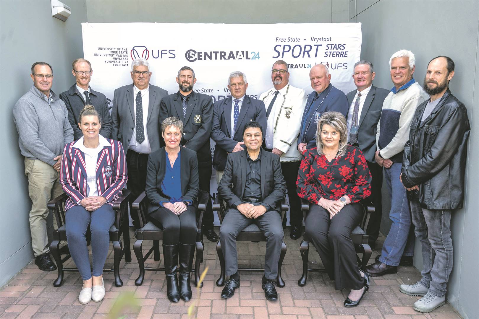 Headmasters of various Free State schools were among the guests who attended the launch of the Free State Sport Stars awards, hosted by Central24 and the University of the Free State (UFS). The launch was held on 12 September on the main campus of the UFS. The gala event will take place at Monte Bello in Bloemfontein on 13 October. From the left are, front: Maryka Holtzhausen (acting director of Kovsie Sport), Anne-Marie Klink (Hoër Meisieskool Oranje), prof. Francis Petersen (UFS rector) and Jeannine van Zyl (general manager of Central24)