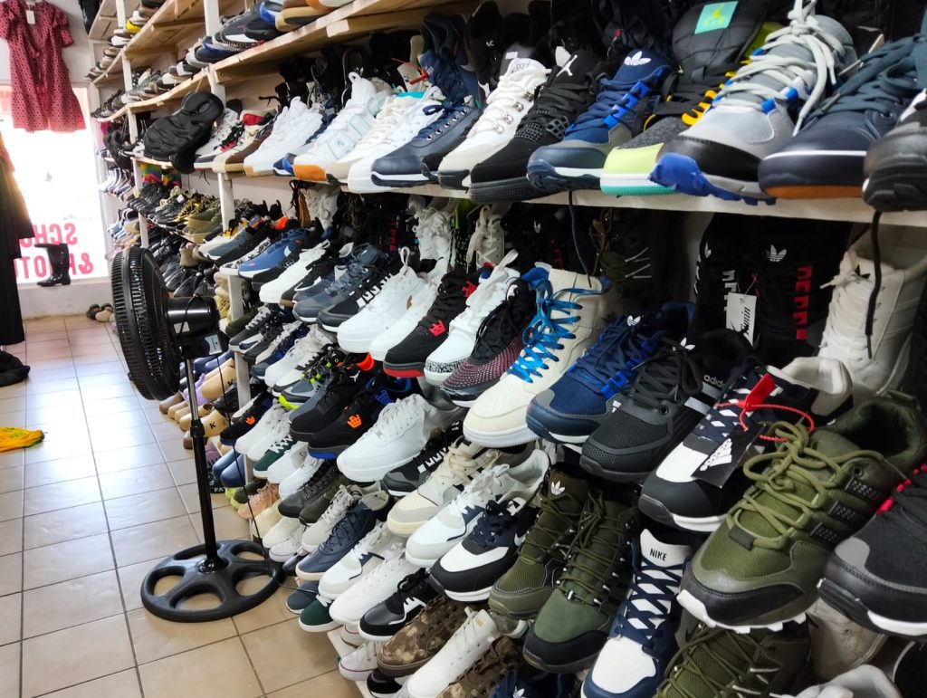 Shoes seized during a police raid on a shop in a nationwide operation.
