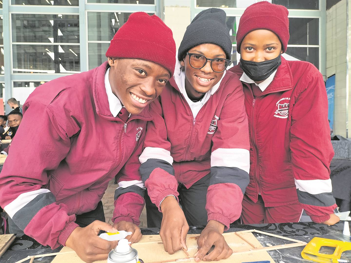 The Bloemfontein branch of the South African Institution of Civil Engineering (Saice) held its annual bridge building and water competition for secondary schools at the Loch Logan Waterfront on 23 April. From the left are Tshepo Komane (Gr. 10), William Motsoari (Gr. 12) and Tethabiel Mohale (Gr. 11). The trio represented the Lenyora La Thuto Comprehensive School in Botshabelo. Photo: Lientjie Mentz