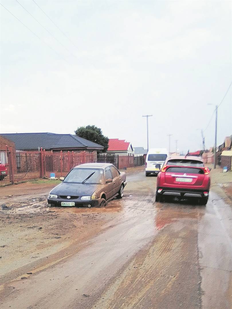 It was a lucky escape for the driver of this Toyota Sprinter after the vehicle had plunged into a hole in Kitsa Street, Phase 2, Bloemfontein, on Sunday (25/09). This hole has formed due to a burst water pipe, which has not been repaired despite repeated efforts by residents living in the area to report this and have the problem resolved before the situation worsens even further. Photo: Supplied