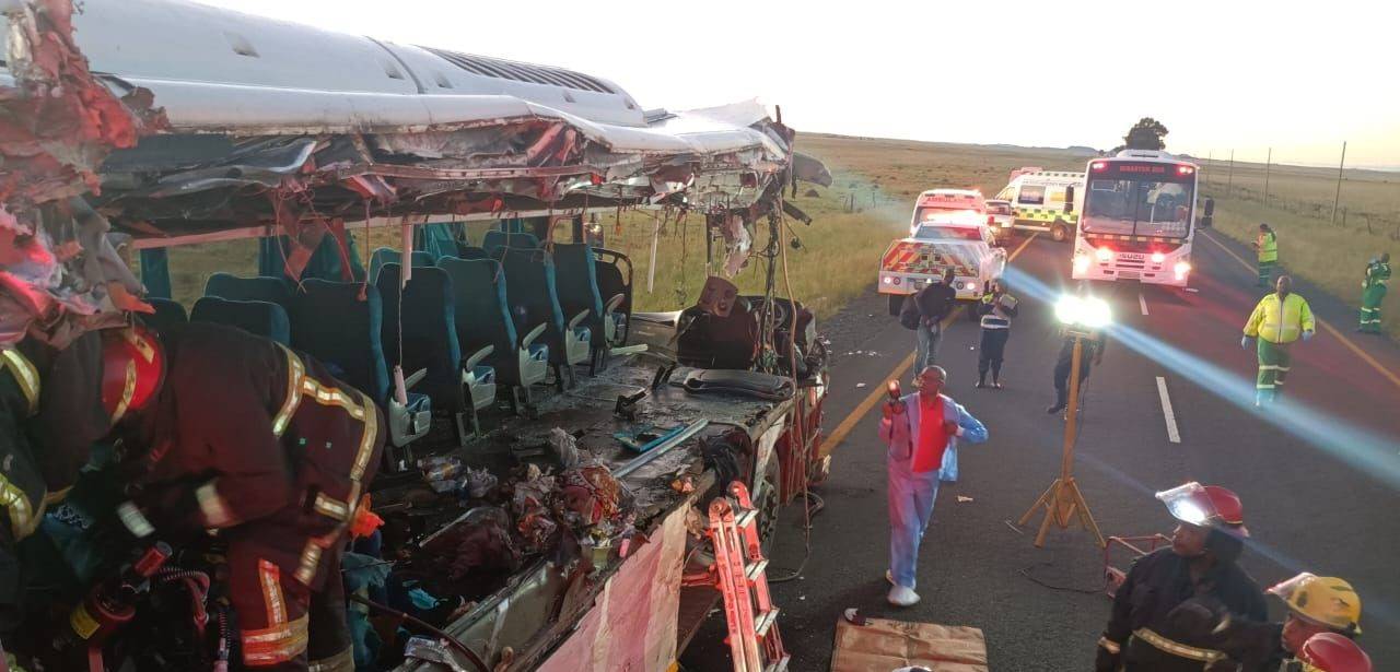 Friday at approximately 13:45, a bus traveling to Zimbabwe and a bakkie traveling from Ventersburg to Bloemfontein collided on the N1 road near the Dampoort Crossing in the Ventersburg district.