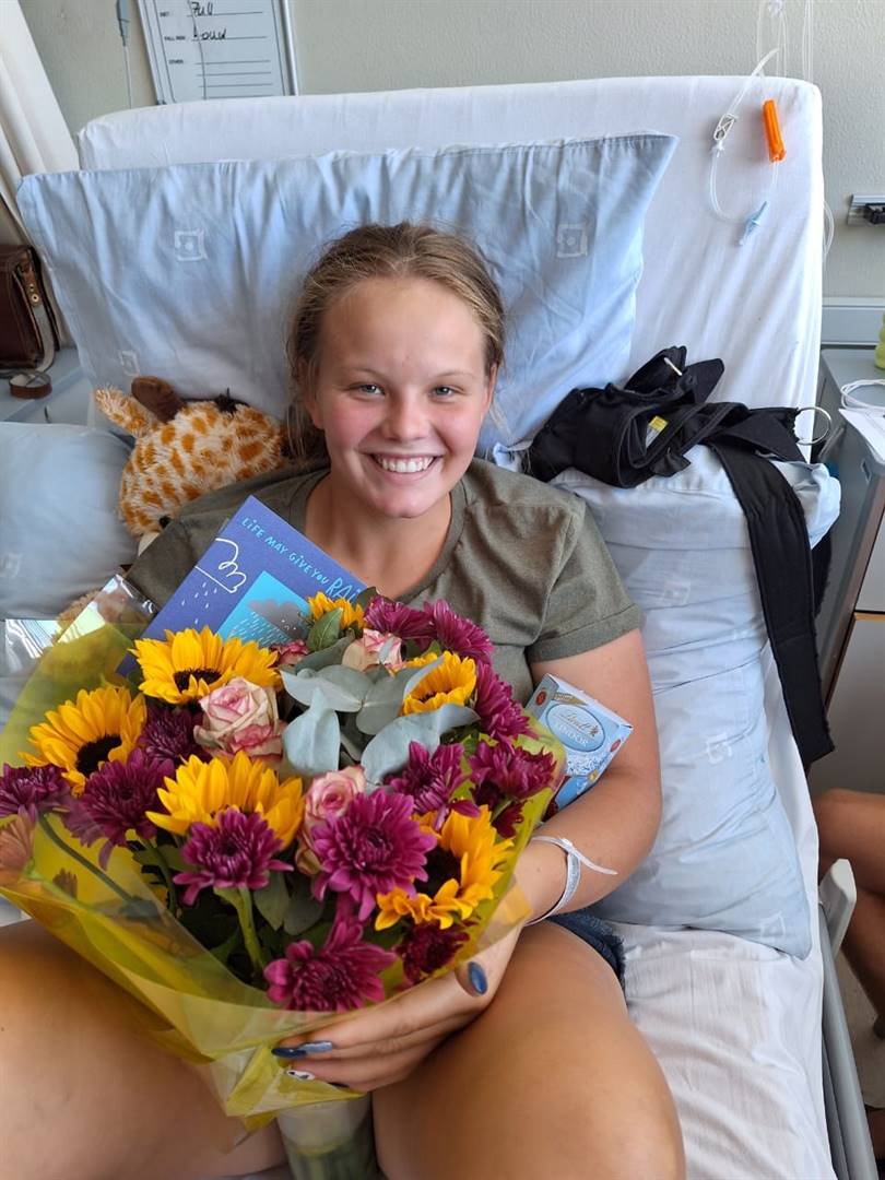 Sané Wilken (18), het op 25 Januarie haar hand en voorarm verloor toe haar hand verstrengel geraak het in ’n kunsmissak wat in ’n gemotoriseerde watertenk beland het.