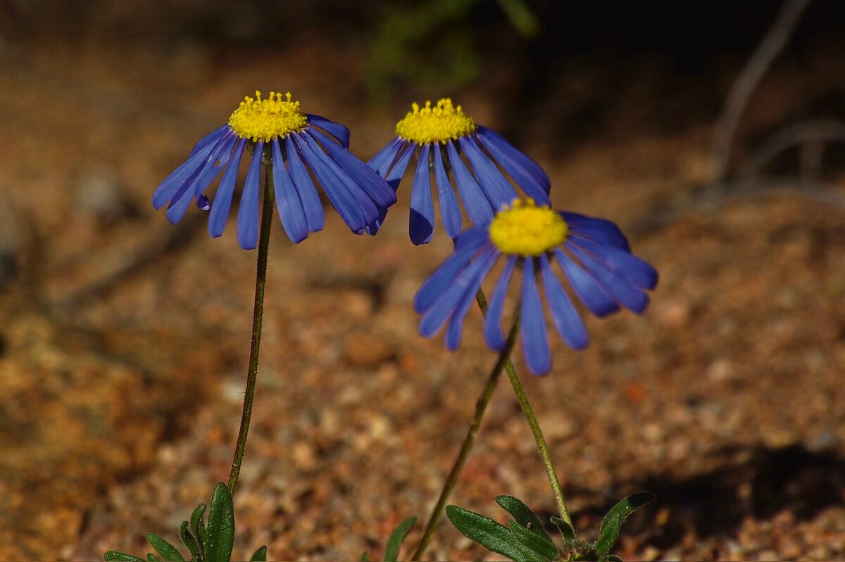 Hier is heelwat kokerbome, maar kokerdoosblom (of uilblaar) was vir my ‘n ontdekking. So ook sambreeltjies, ‘n gepaste naam vir hierdie soort felicia (of astertjie) met kroonblare wat ondertoe hang.