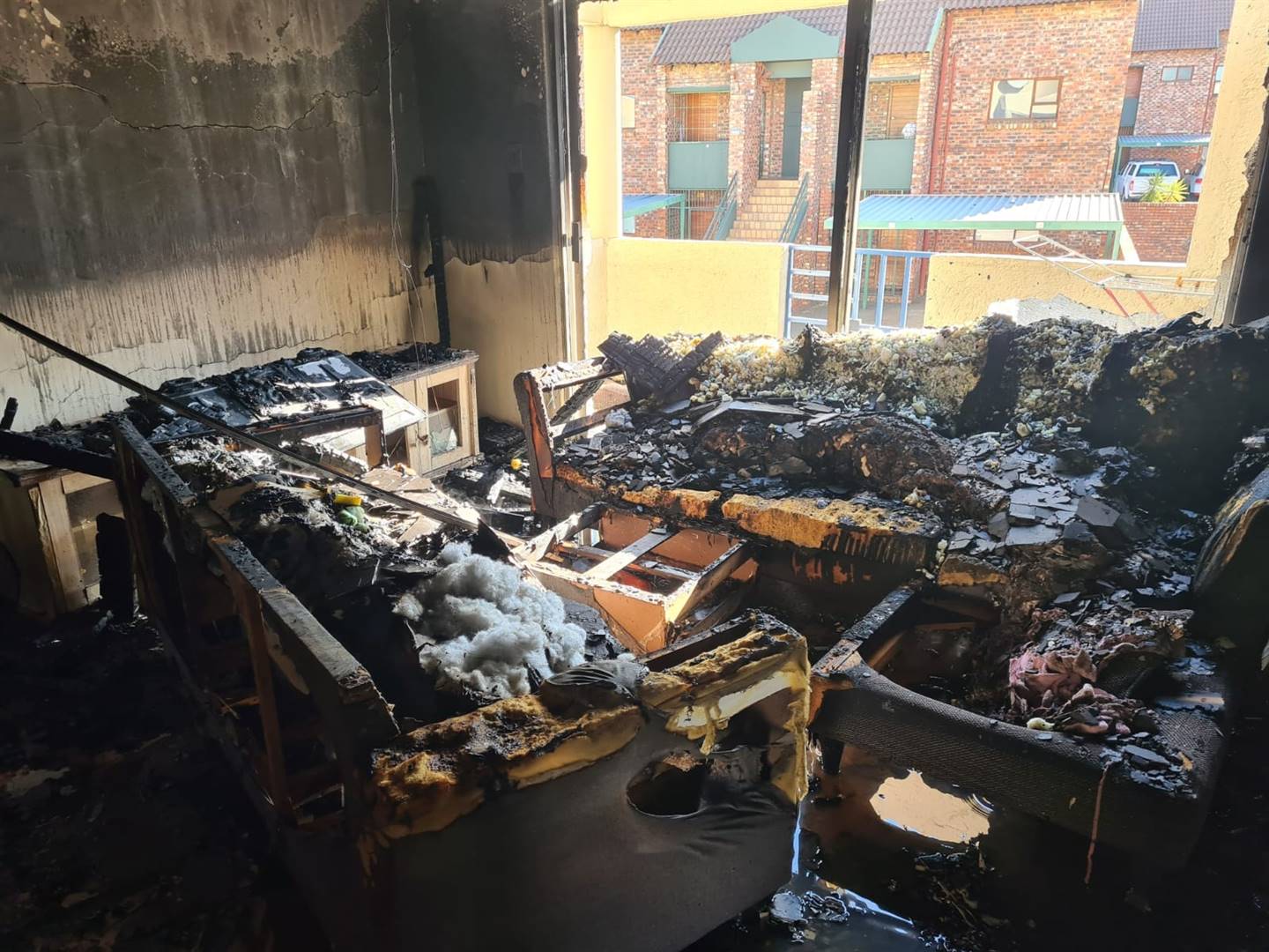 Braam van Zyl, afdelingshoof van die Mangaung-brandweer, sê die brand is om 08:36 by die brandweer aangemeld en hulle was binne 11 minute op die toneel. Hy sê ’n oupa en twee kleinkinders wat in die meenthuis op die eerste verdieping was toe die brand uitgebreek het en is deur bure uit die meenthuis gehelp.