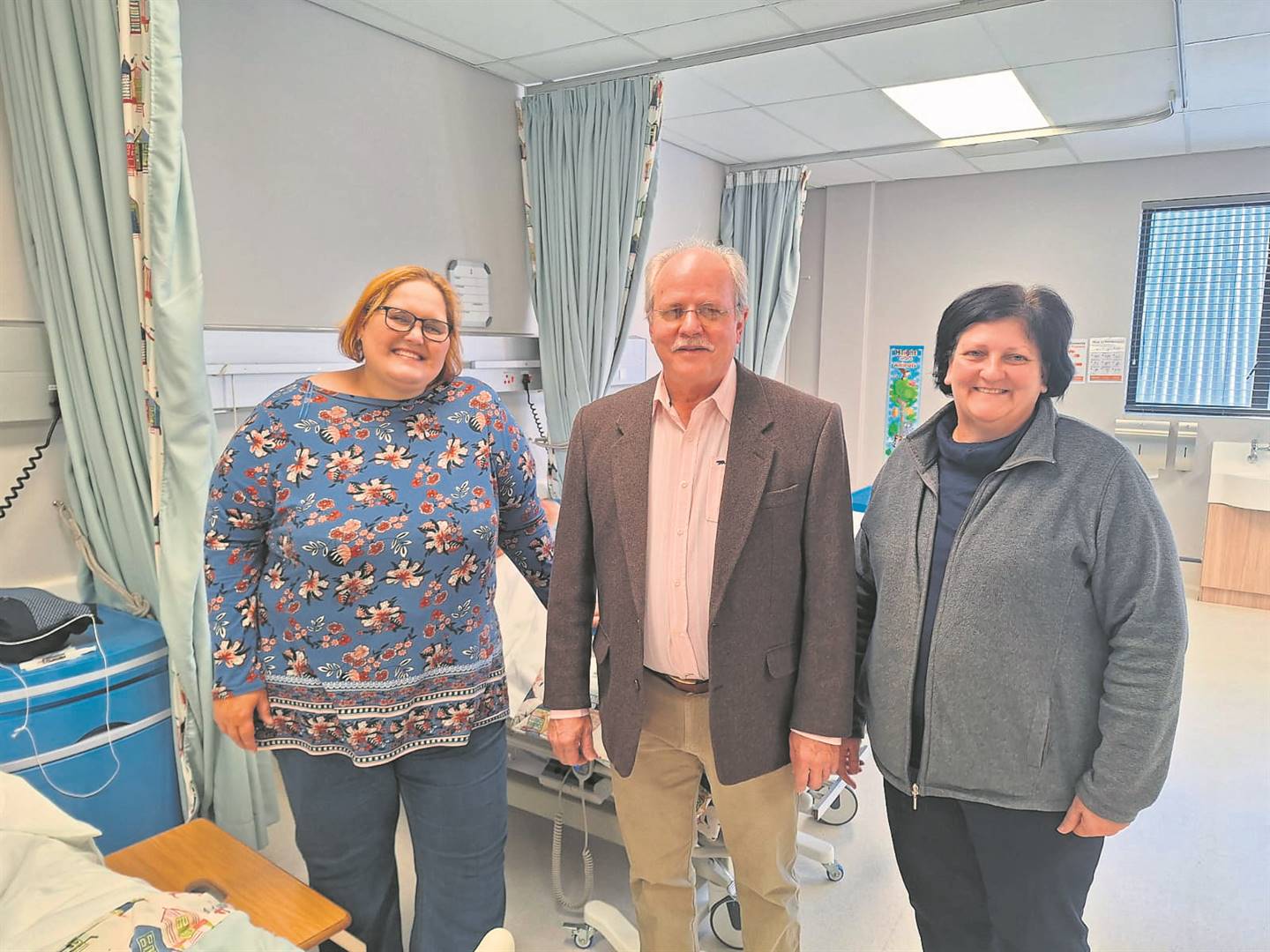 heidswetenskap-onderrig aan die UV) en dr. Anthony Travers (narkotiseur).Fransie Grobler, die enigste personeellid van CityMed Daghospitaal wat sedert die heel begin by die hospitaal betrokke is.Van links is Jana Britz (hospitaalbestuurder van die CityMed-hospitale), Vivienne Pistorius (bemarkingsbestuurder) en dr. Gina Jacobs (kliniese bestuurder van die CityMed-hospitale).Die gaskunstenaars vir die aand was Eclectic. Dié groep is van links Thabo Hlongwane, Cézanne Yzelle en Mario Lategan.