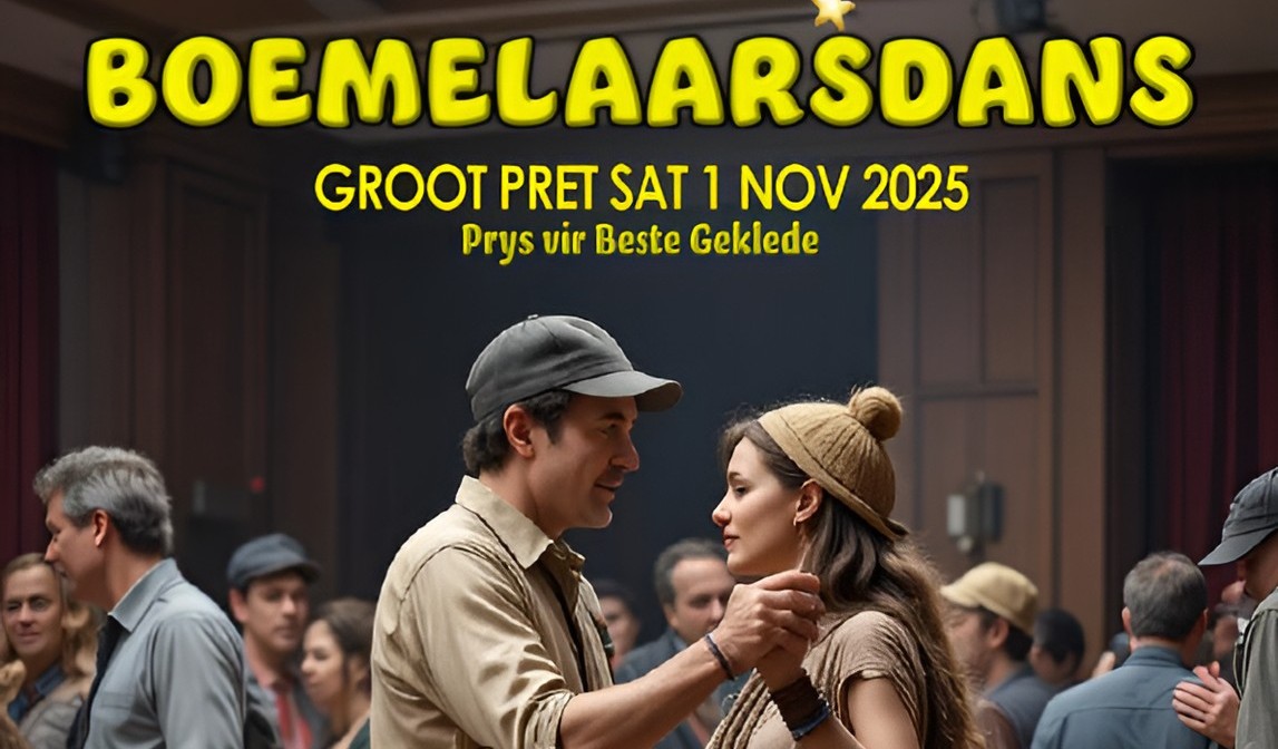 ‘n Boemelaarsdans word gehou by die Laerskool Sand du Plessis. Daar sal pryse wees vir die beste uitrusting. Kinders jonger as 10 jaar oud, kry gratis toegang. 10 Jaar → GRATISKleredrag is informeel, maar geen plakkies of kaalvoet dans. Bring jou eie eet- en drinkgoed. Veilige parkering (Karwagte) WHATSAPP BOODSKAPPE ALLEENLIK: 0832528304 / 0736300442