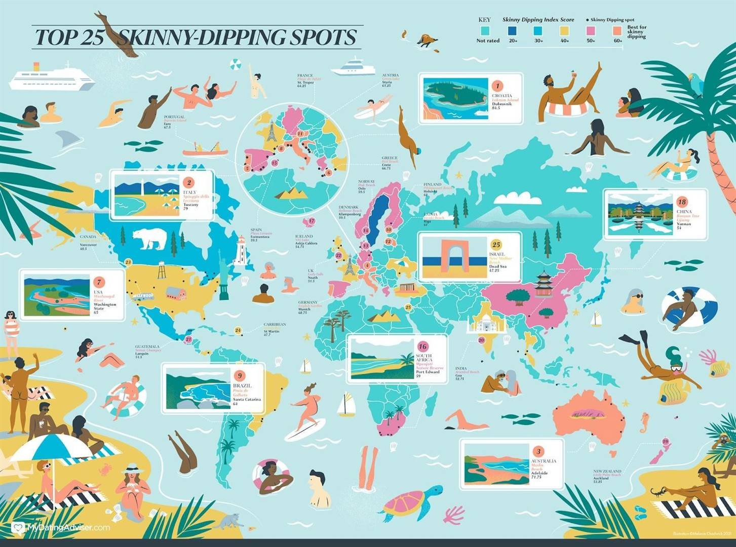 In a new study that determined the best skinny dipping locations world-wide, MyDatingAdviser compared a hundred nude beaches across the globe to determine the best places to enjoy a skinny dip.