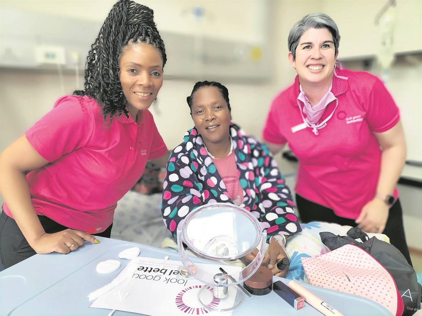 Die groep bestaande uit Marileen Lombard (somatoloog), dr. Ilse de Witt (algemene praktisyn), Adri Claassen (somatoloog), Terba Jacobs (koördineerder van Look Good, Feel Good), OG Diseko en Thobeka Ranqabang (albei maatskaplike werkers) het hul tyd dié dag opgeoffer om kankerpasiënte met skoonheidsprodukte te verras en raad te gee oor die aanwending daarvan.