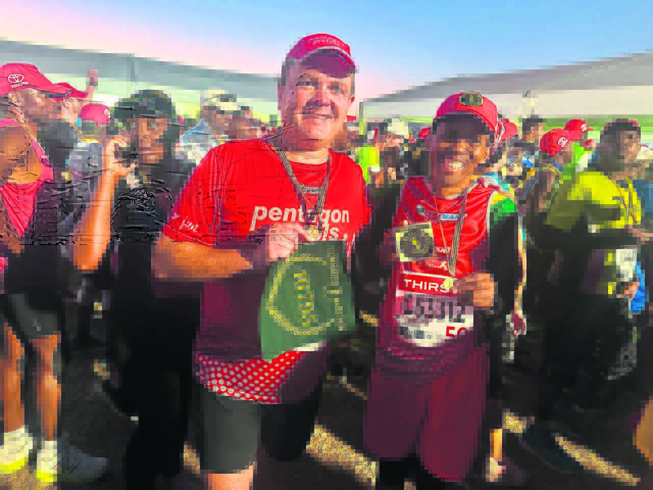 Vyf lede van die Pentagon Pistols het vanjaar die Comrades ’n eerste keer aangedurf. Hulle is Martin Goosen, Sakkie Meyer, Nicol Vermaak, Lyneze Stergos en Lucie Grove.