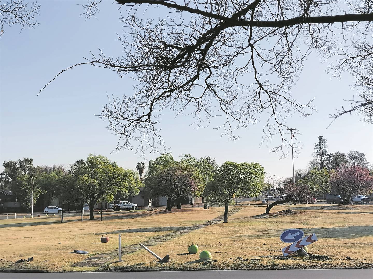 Onverskillige of dronk motoriste rig veral naweke groot skade aan wanneer hulle die pad byster raak en pale, sypaadjies, padtekens en verkeersligte tref. Dié sirkel by die Laerskool Willem Postma lyk weer hierdie week soos ’n oorlogsone nadat iemand die naweek die padtekens, sementballe en paaltjies daar omgery het. Florein de Winnaar van die Noordelike Buurtwagvereniging (NNWA), wat die sirkel onderhou, sê dit gebeur byna elke naweek dat motoriste in Albrechtstraat jaag en op die sirkel beland. Sy sê dit kos die vereniging elke keer geld om die skade te herstel. Sy sê die skade wat die naweek aangerig is, sal ongeveer R8 000 neem om te herstel. De Winnaar sê die padteken wat begin Augustus opgerig is, het R2 140 gekos. Sy sê die NNWA is regtig moedeloos daaroor dat die sementballe en paaltjies wat oor naweke platgery word elke keer weer op hul plek gesit moet word.Foto: Lientjie Mentz