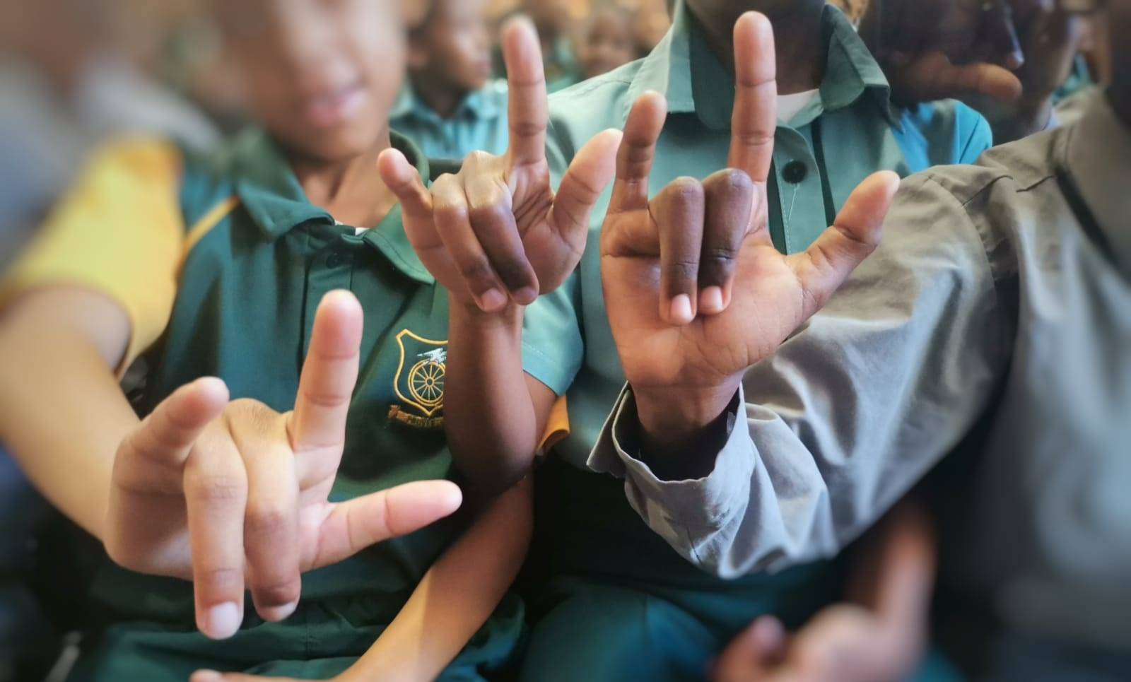 Daarna het die kinders ’n oulike liedjie geleer wat vir hulle letters van die alfabet in Gebaretaal leer.