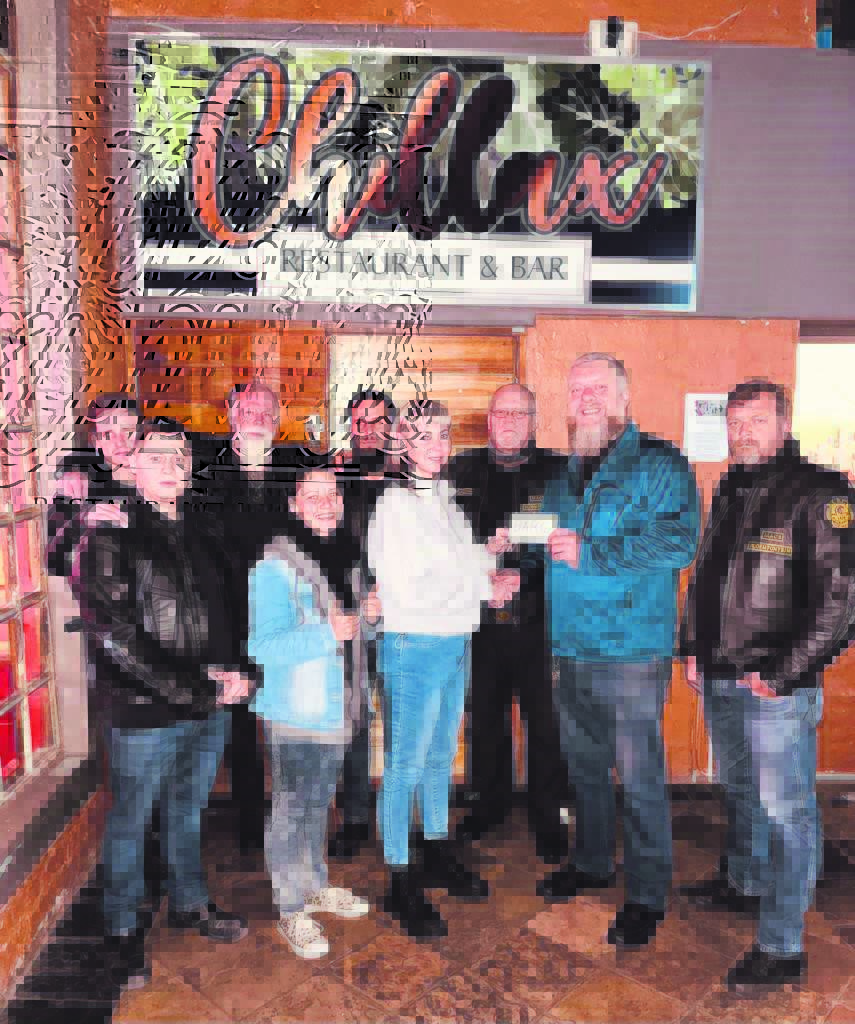 Die Chillax-restaurant en Mac’s Bloemfontein Bikers het op 29 Julie ’n skenking van R7 000 aan die dierereddingsorganisasie Barc oorhandig. Daarmee kon veearts-rekeninge betaal word. Op die geleentheid is van links Ian Nortier, Janeman van Heerden, Steven Lambourne, Cami Nel, Danie Pienaar, Hannalize van der Merwe, Corrie du Plessis, Johan Swart en Werner Botes.Foto: Verskaf