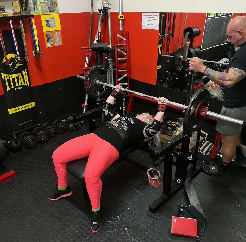 Bibbi neem deel in die bankiedruk, dooie gewigoptel en hurke, en mik om deel te neem in die o.82,5kg-afdeling.