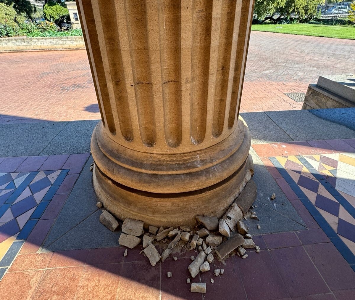 Een van die pilare voor die Vierde Raadsaal wat verkrummel. Foto: Verskaf
