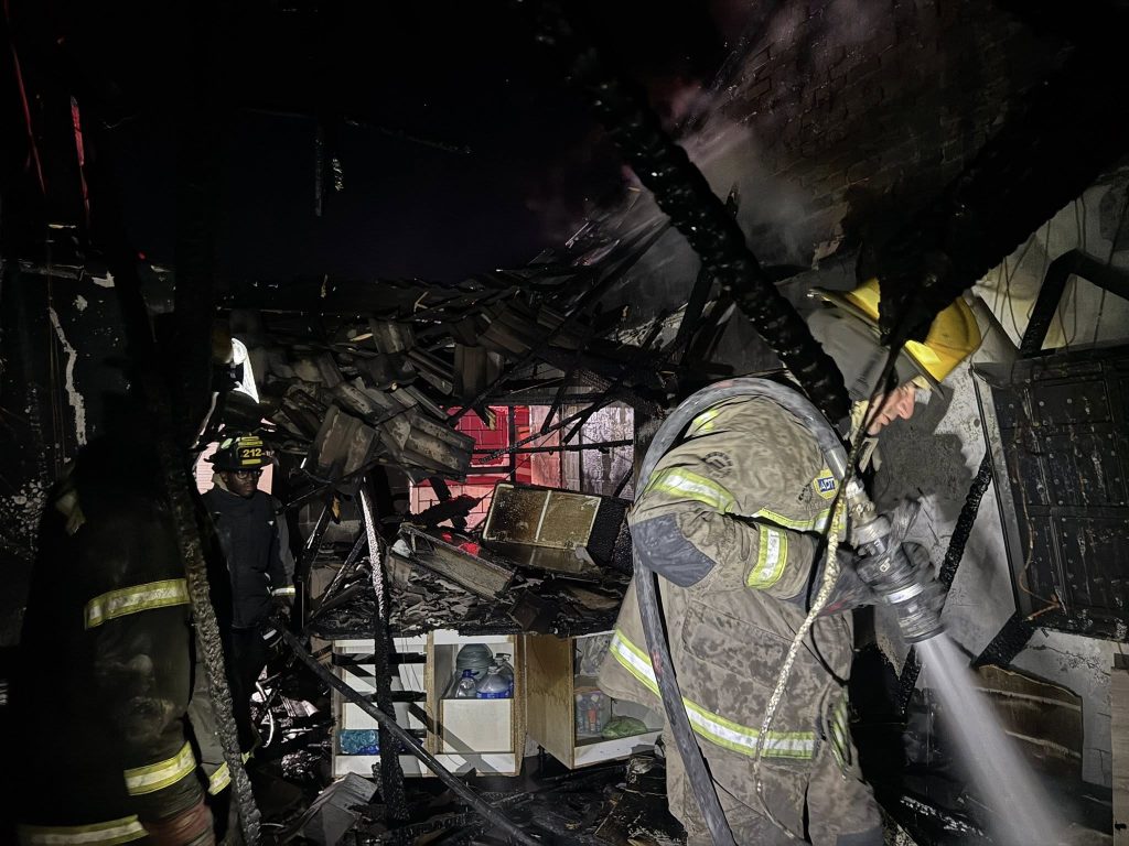 “It seems when the fire starts, nobody was present at home. Members of the neighbourhood watch activated the neighbours, then also called the fire department, which responded within eleven minutes. But when we arrived the roof had already collapsed. Volunteers including the Neighbourhood watch were already busy trying to put out the fire,” said Van Zyl.