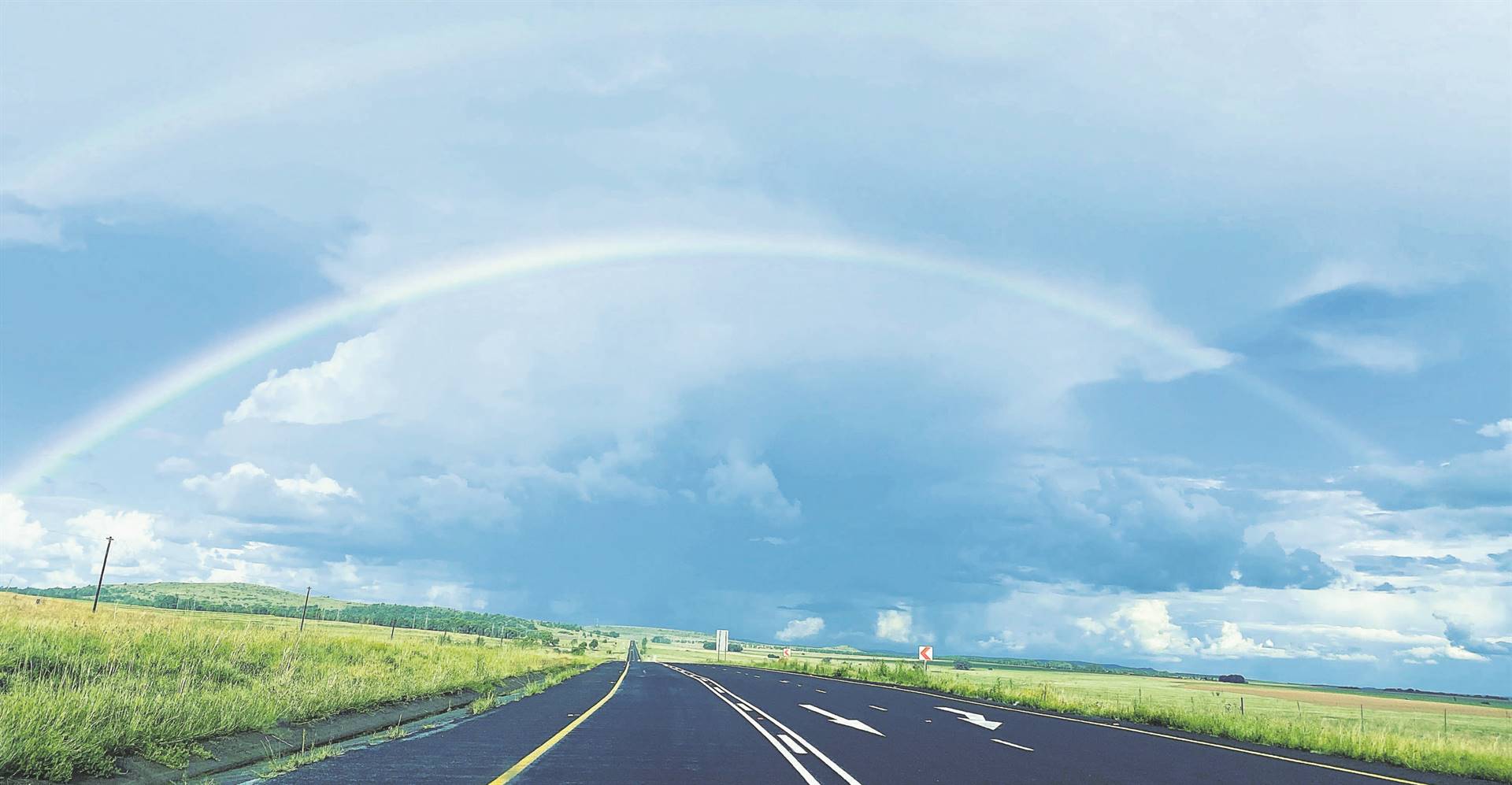 Nandi Haswell van Ladybrand het verlede week dié reënboog afgeneem op die pad tussen Tweespruit en Ladybrand. Goeie reën het weer die afgelope naweek oor die sentrale deel van die Vrystaat uitgesak.