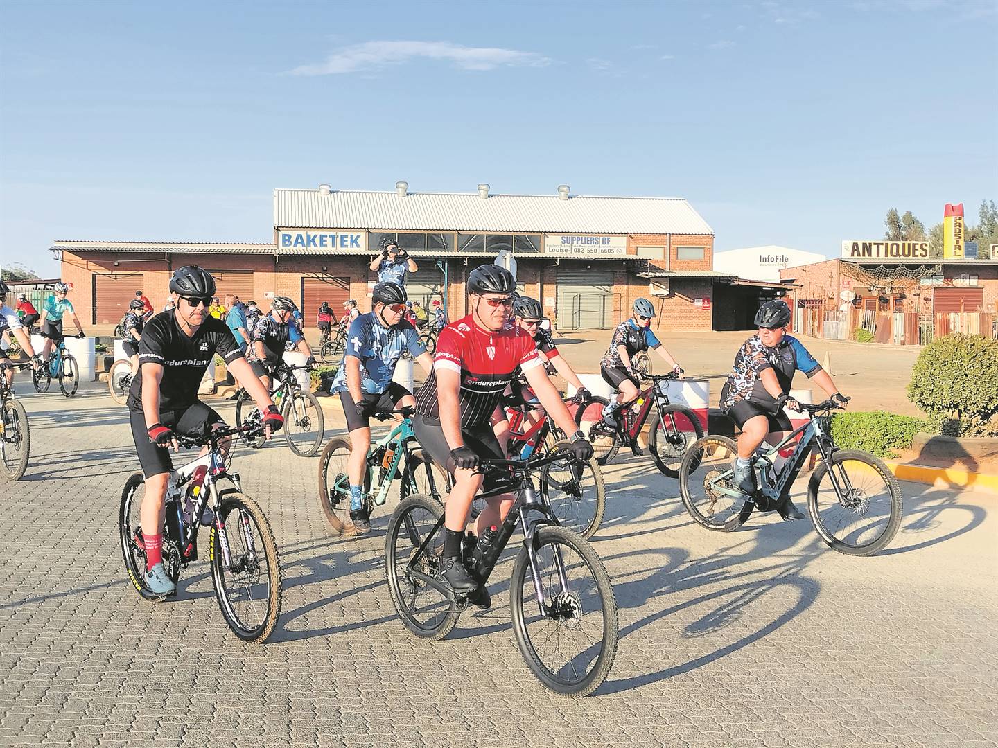Bergfietsryers in Bloemfontein het Saterdag by die vulstasie by Makro saamgetrek om ’n pretrit al met die agterpaaie langs na die De Oude Kraal-landgoed te onderneem. Die doel van die rit, wat kort ná 06:00 begin het, was onder meer om geld vir die Talita Cumi-kinderhuis in te samel. Die 108 fietsryers wat deelgeneem het, het R12 500 vir dié doel ingesamel. Foto: Lientjie Mentz