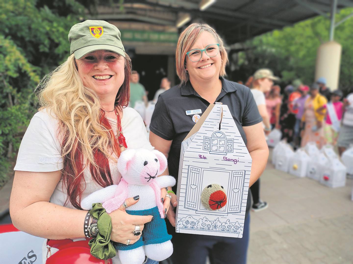 Motorfietsryers van oor die stad heen het Saterdag deelgeneem aan die Immortals-motorfietsklub en die Childhood Cancer Foundation (CHOC) se motorfietsuitstappie waarmee hulle uitgereik het na kinders wat by die Universitas- Akademiese Hospitaal en die Nasionale Hospitaal vir kanker behandeling ontvang. Alida Hiles (links) van Projek Tandemuis het aan elke kind ’n “biker”-tandemuis in ’n huisie vol geskenke oorhandig. Saam met haar is Sonet van Zyl van die CHOC-huis in Bloemfontein. Foto: Lientjie Mentz