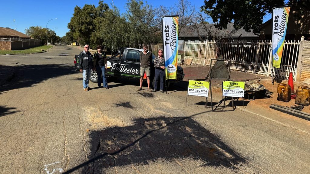 Die woonbuurtvereniging Trots Pellissier het op Maandag 12 Mei in samewerking met Raubex talle slaggate in Liefdesliedjiestraat gevul.