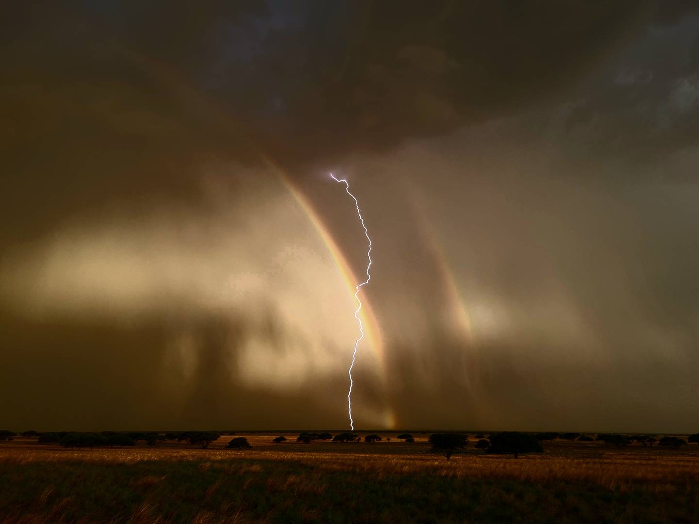 Tydens ‘n toer en vleisbraaigeselligheid op Oukersaand het dit onverwags begin reën. “Die gaste het in die reën baljaar en pragtige foto’s van die weerlig en die reënboog geneem. Dit was ‘n magiese aand waarin vreemdelinge dik stukke gesels het, soos boere by hul plaasheinings.”