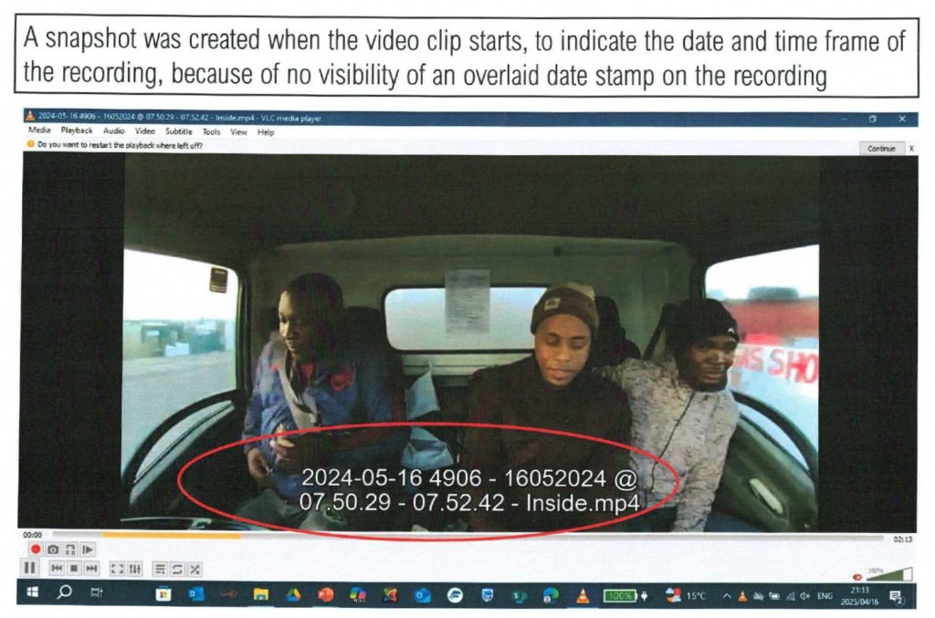 Op 5 Junie 2024 het Nogaya die beskuldigde in ‘n fotoparade en in die hof uitgewys as die beskuldigde wat voor die vragmotor gestaan het en toe na die bestuurskant gegaan het.