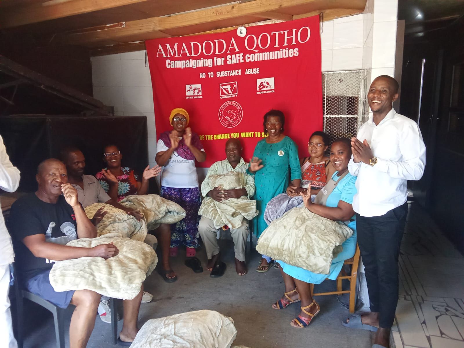 At least 15 senior citizens from Makhaza received new blankets donated by the Amadoda Aqotho organisation on Sunday, 15 March. The event was held in the garage of a member’s home in Makhaza.