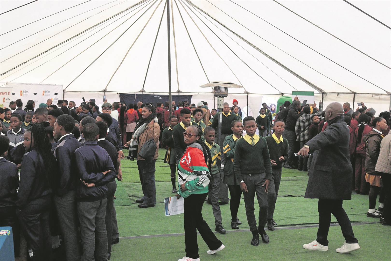 Learners and teachers in a tent at the Environmental Expo.