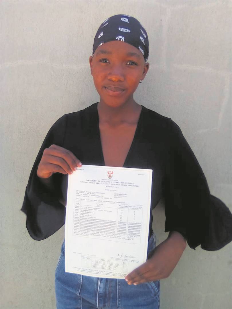 Inga Mhlauli(18) carrying his certificates.