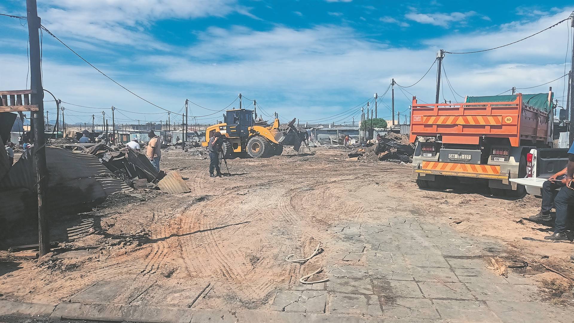 In the aftermath of a devastating blaze that destroyed over 100 shacks and left more than 400 people homeless, Mangaung informal settlement residents, in Lower Crossroads, are picking up the pieces to rebuild their shacks.