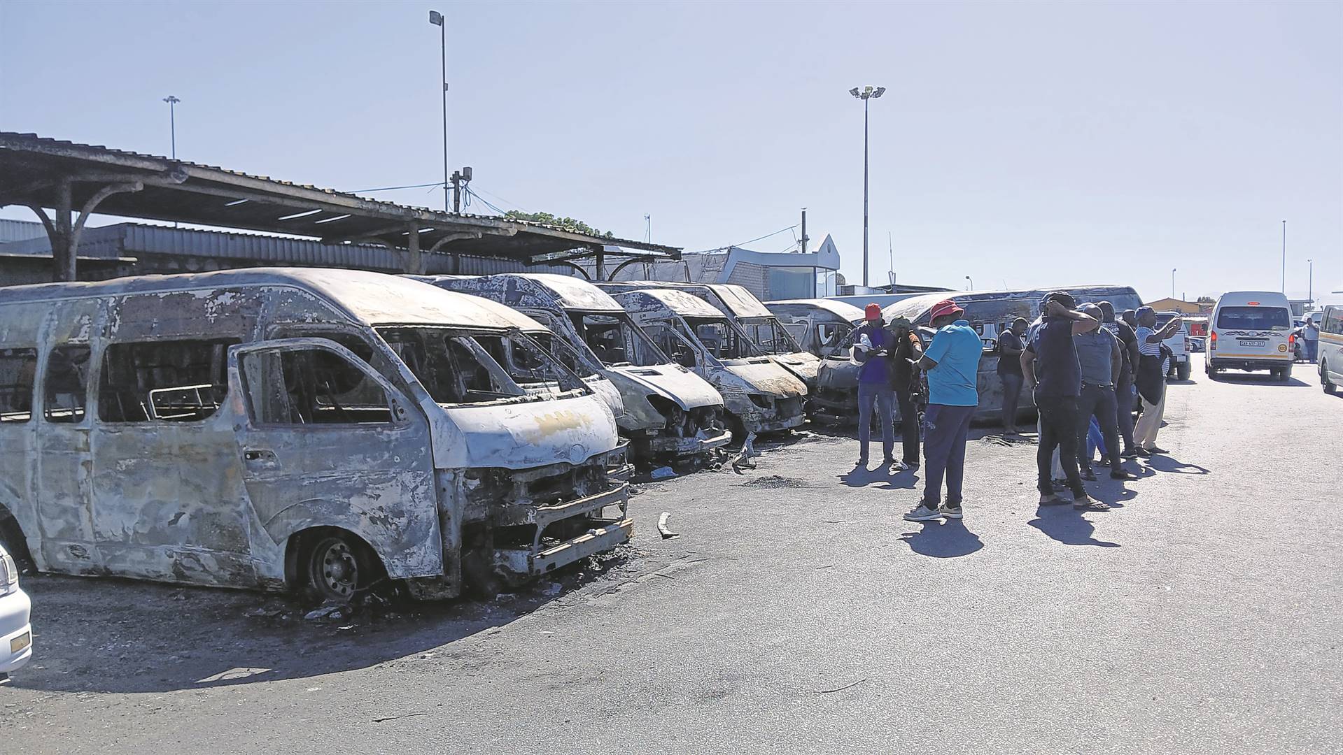 At least 13 taxis and three minibuses were burnt during the incident at Nyanga Taxi Rank. The cause of the fire remained a mystery, but police are probing an arson case.