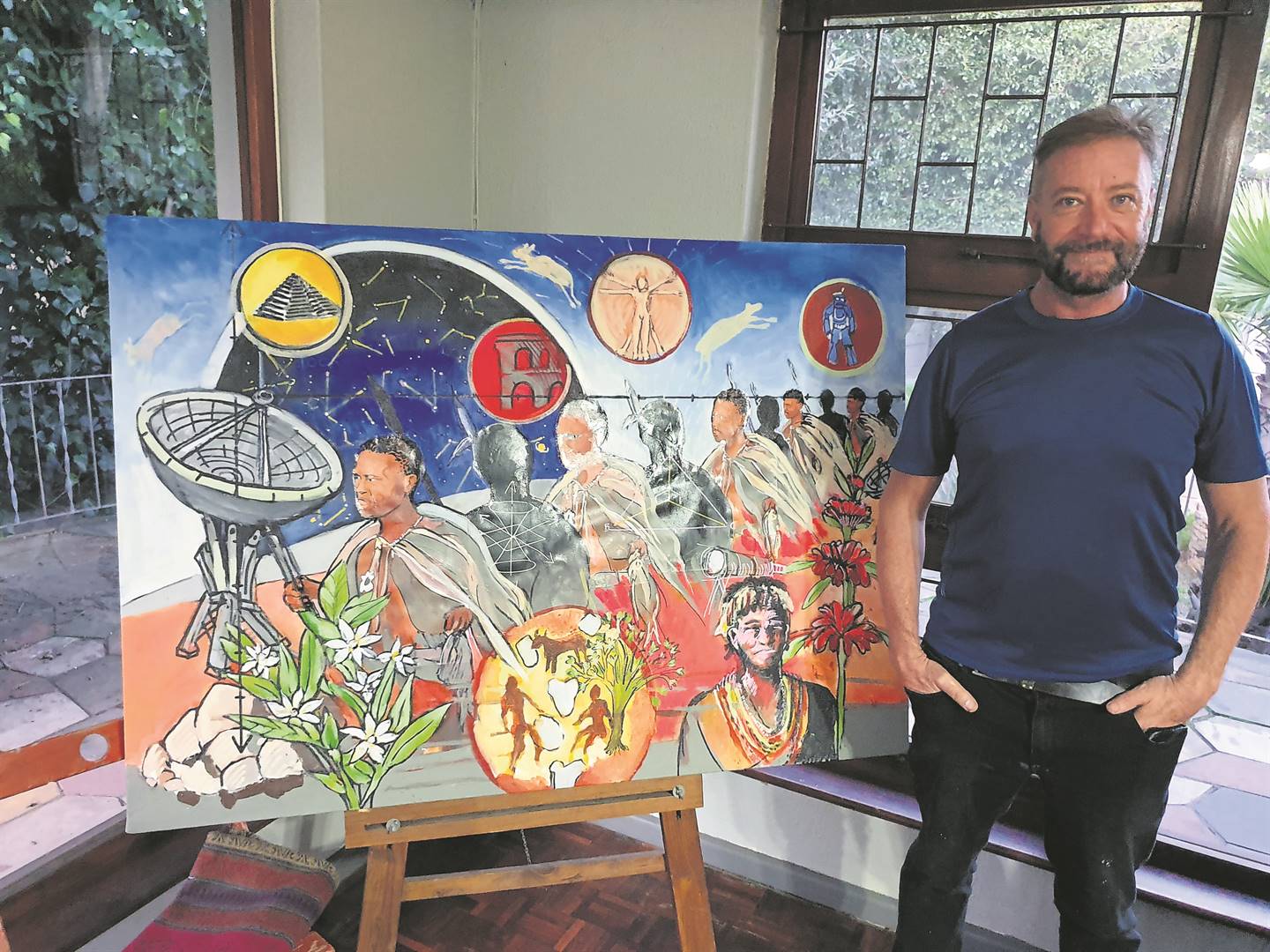 “It captures the artistic interpretations of science and the universe through the ages, highlighting the deep connection between art and human intellectual pursuits. The artwork depicts five dominant eras: ancient civilisations such as the Mayans and the San; the Classical World with dominant Greek and Roman influences; the Renaissance which was characterised by scientific exploration; and artistic reawakening.