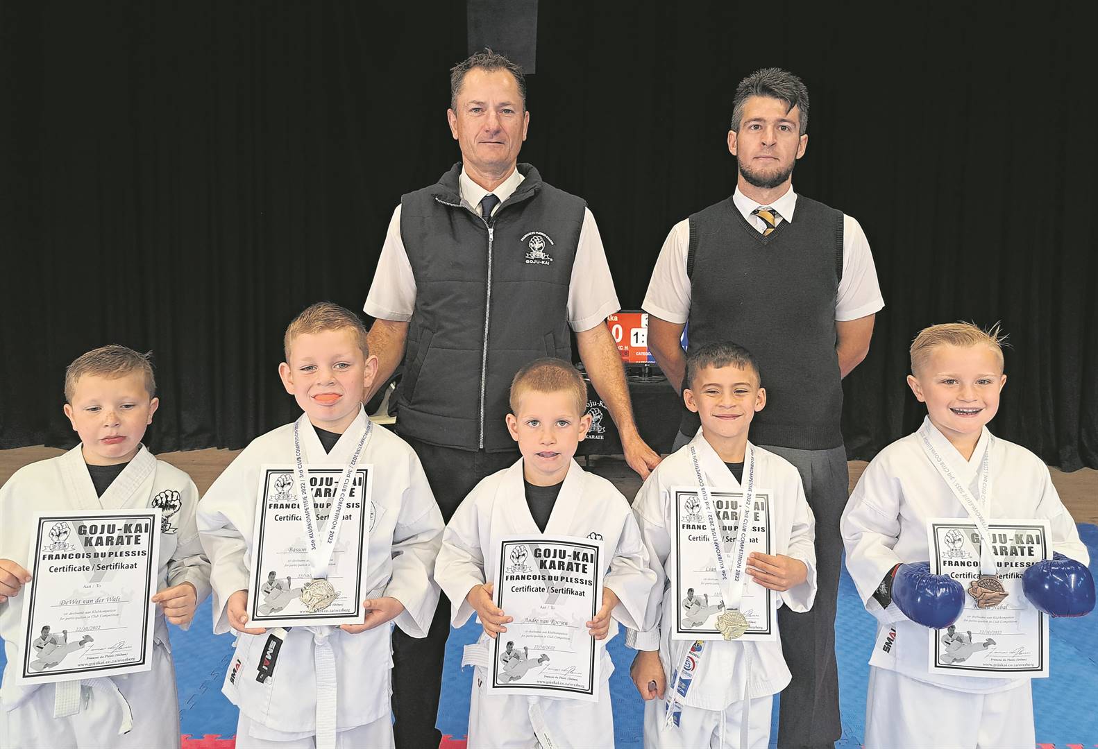 The Overberg Goju-Kai Karate Club celebrated a successful year as their karatekas are enjoying participating in competitions again. The third and final competition for the year was held last month (October), with more than 100 entries were received. This competition was also the start of the selection process for Goju-Kai National Championships for next year. Locals who competed (behind, from left) are Shihan Francois du Plessis and Sensei Louis Schultz with (front) DeWet van der Walt, Basson Hougaard, Andre van Rooyen, Liam Opperman (Stellenbosch) and Kiaan Nabal (Durbanville).