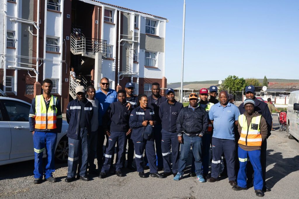 Spanne van die Stad se departement menslike nedersettings het Dinsdag 29 April ‘n besoek aan Macassar gebring waar instandhoudingsbeamptes besig was om instandhoudings- en opgraderingswerk aan die Stad se bekostigbare-gemeenskapsresidensiële-eenhede (GRE’s) te voltooi. “Ek is verheug om die uitwerking van ons instandhoudingspogings in Macassar te sien,” het Pophaim gesê. “Ons spanne voer noodsaaklike instandhouding aan GRE’s uit as deel van ons behuisingsveldtog, met die fokus op verbeterde veiligheid en dienste. Die Stad het meer as R1,2 miljard in GRE’s oor die volgende paar jaar belê om lewensomstandighede te verbeter. Dit is goed om te sien hoe instandhoudingspanne aandag skenk aan inwoners se versoeke. As verskaffer van bekostigbare behuising, gee ons voorkeur aan ons huurders se welstand. Ek moedig alle huurders aan om probleme dadelik aan te meld. Openbare behuising floreer deur samewerking van alle belanghebbendes. Dankie aan Span Kaapstad vir hul toewyding om beter huise vir ons inwoners te skep.” Deurlopende werk sluit in skrynwerk, messelwerk, sweiswerk, verfwerk, elektriese installasies en loodgieterswerk.
