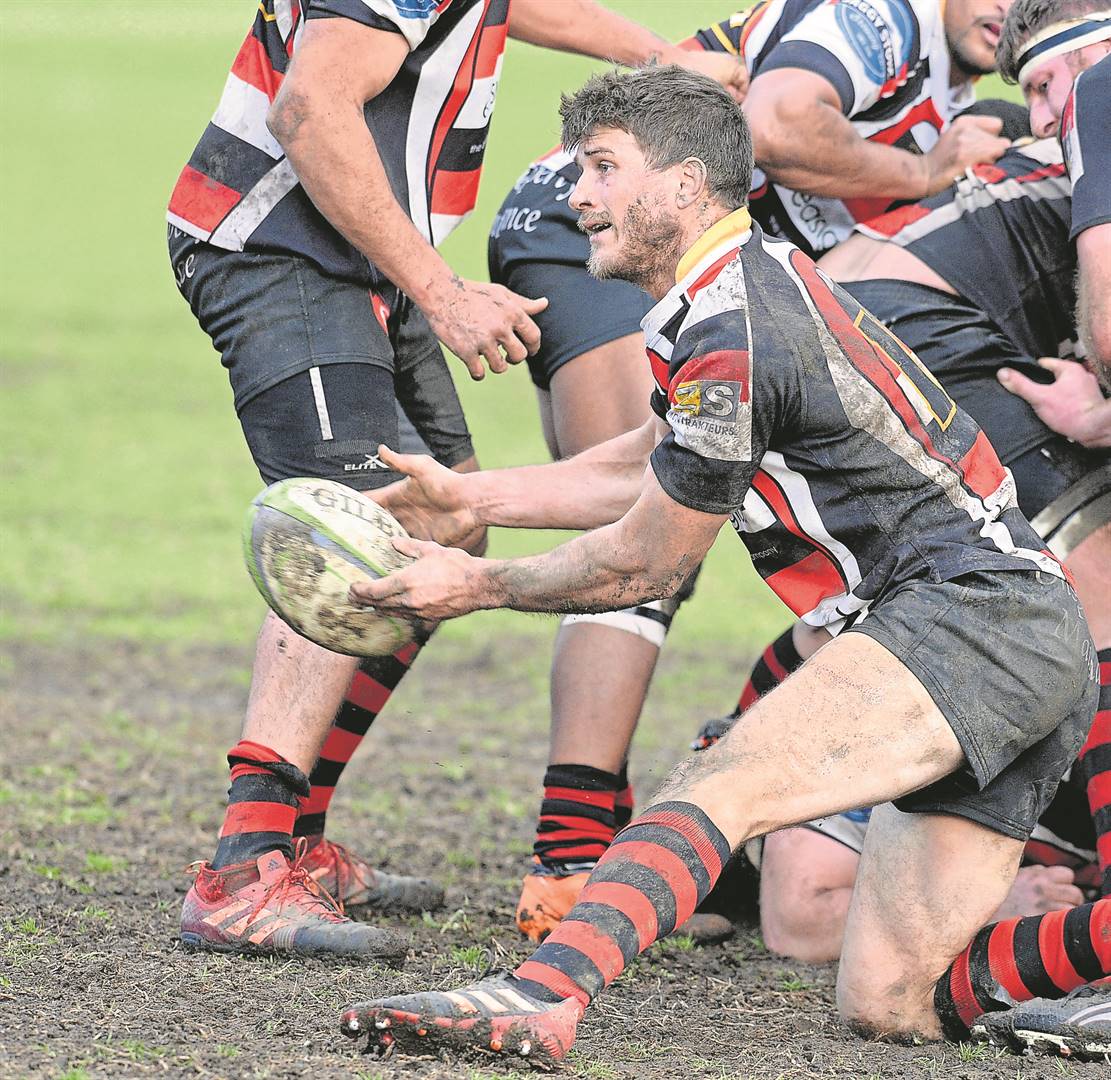 Marthinus Carstens gee die bal vir sy spanmaats aan.