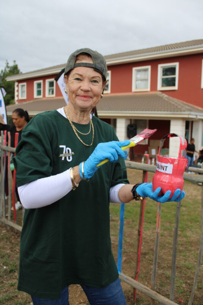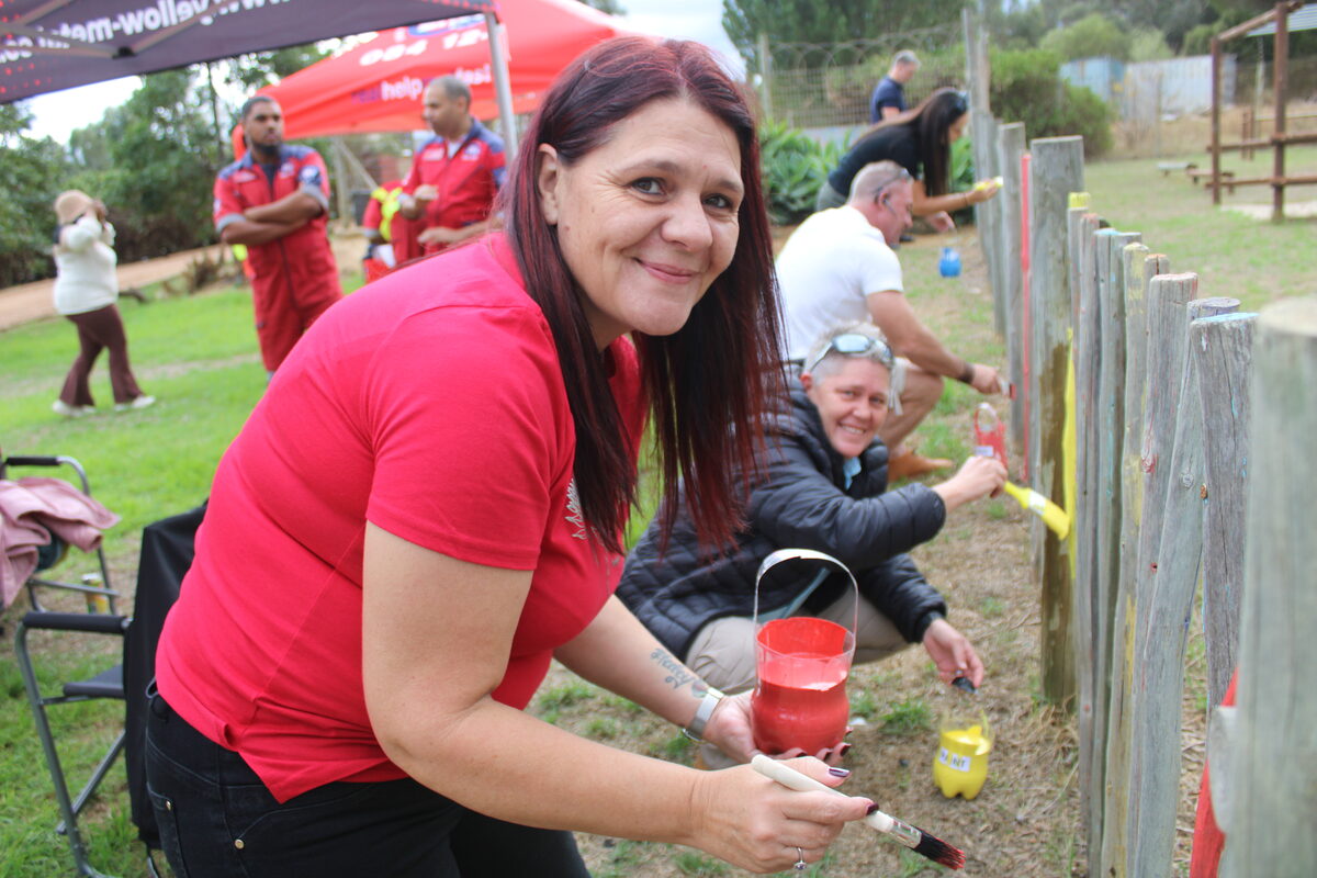 Fiona Johnson of Bell Equipment had a great time painting the playground red.