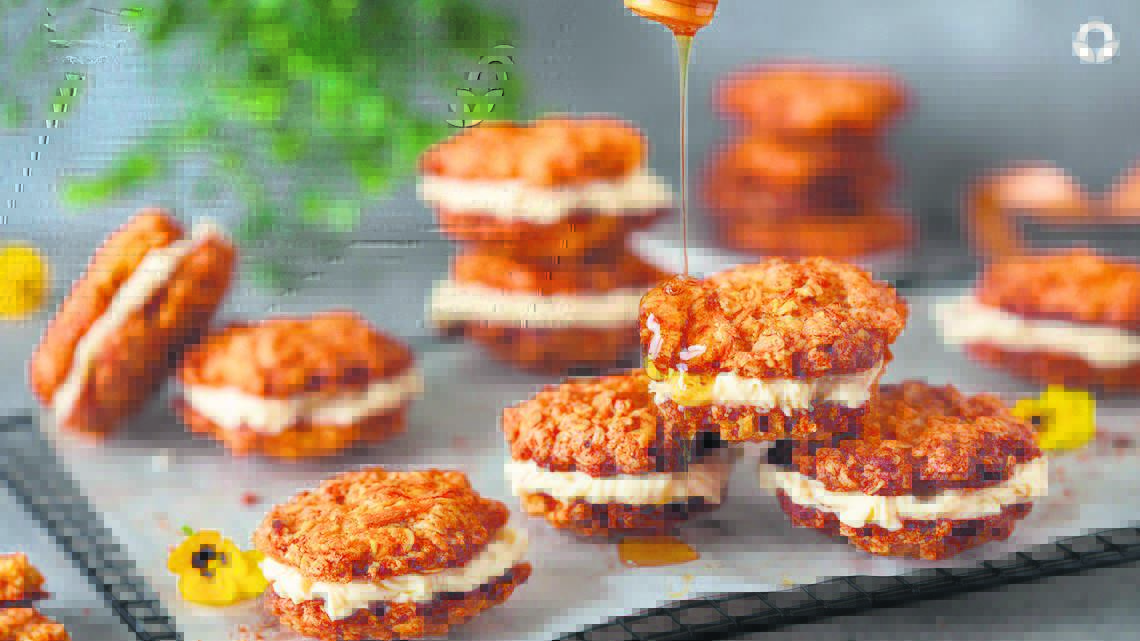 Carrot cake-inspired cookies filled with vanilla cream cheese that are gluten-free, egg-free and sugar-free, high in protein, but definitely not fun-free!) Ingredients:
