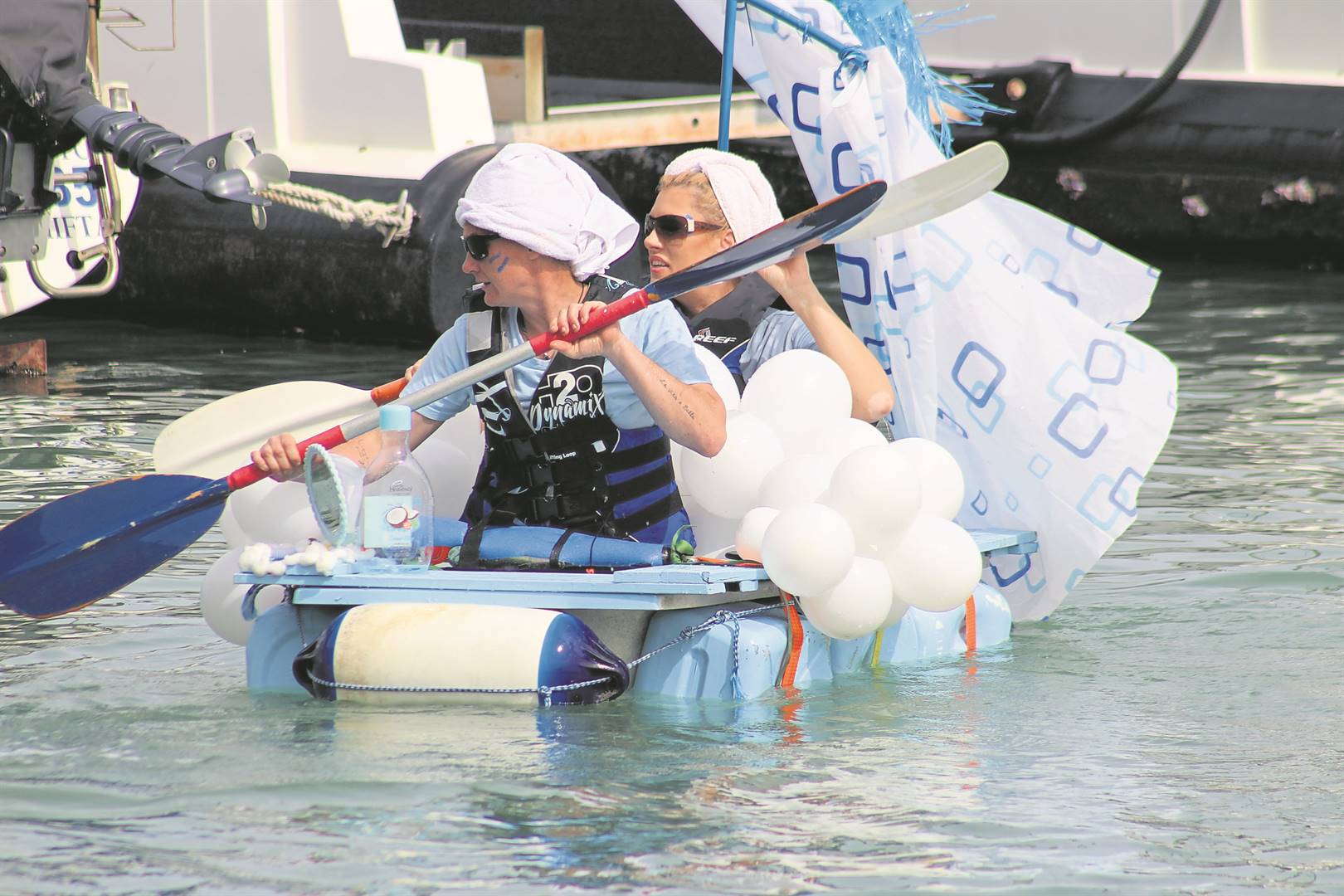 Splish Splash teammates Monette Human and Amorette Hurter braved the water in their makeshift bathtub to compete in a round of the Anything that Floats race.
