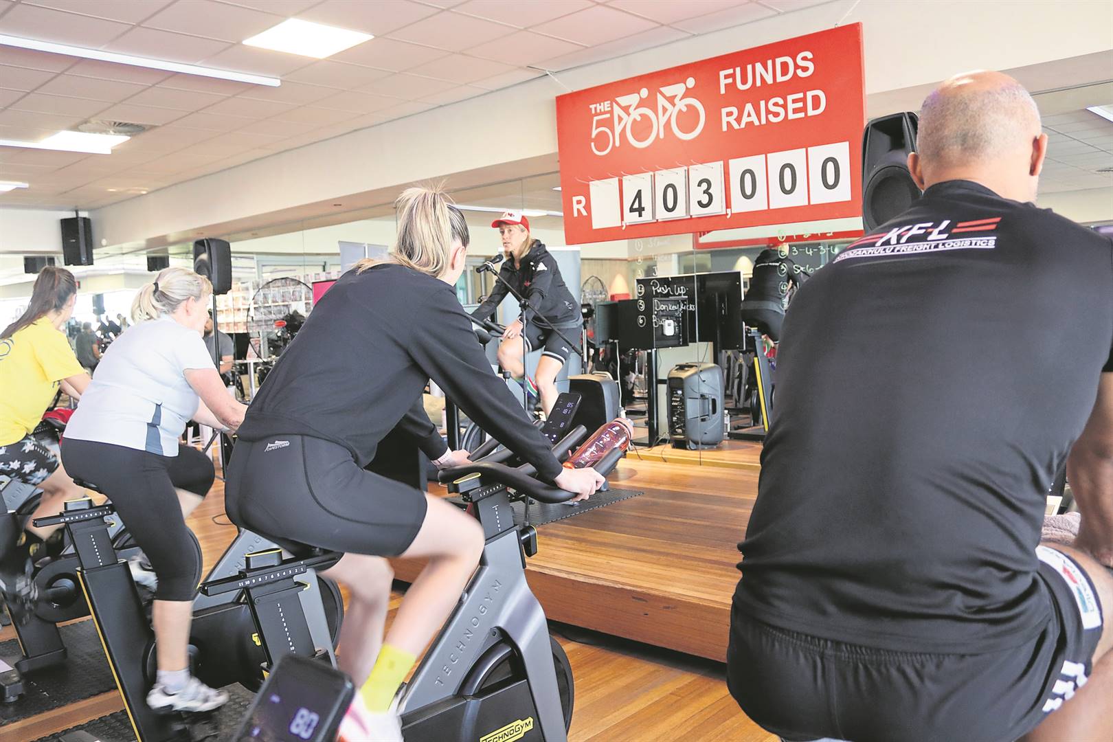 “The other bikes were all booked by organisations that entered teams to compete in the spinning challenge, which raised R173 000.”