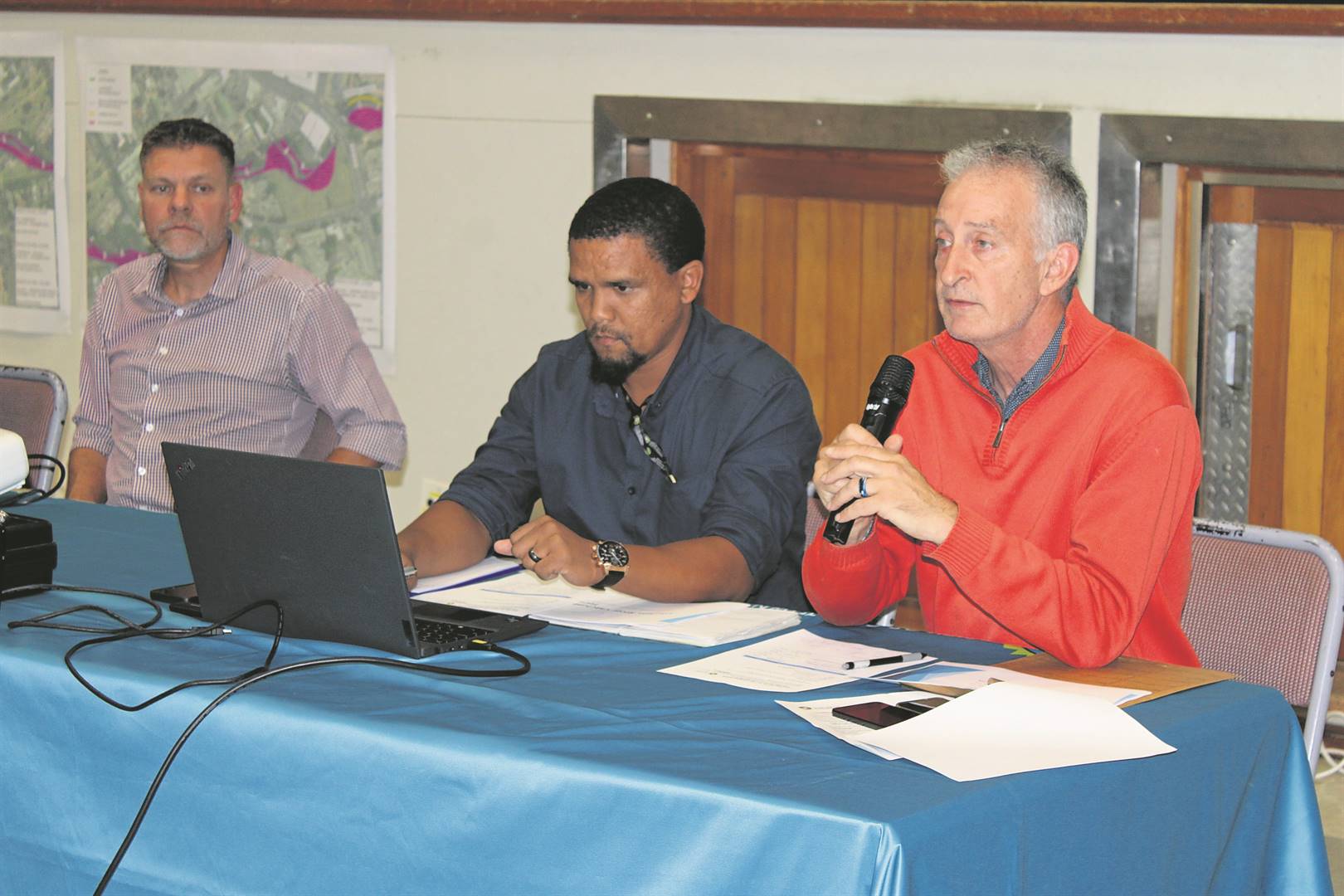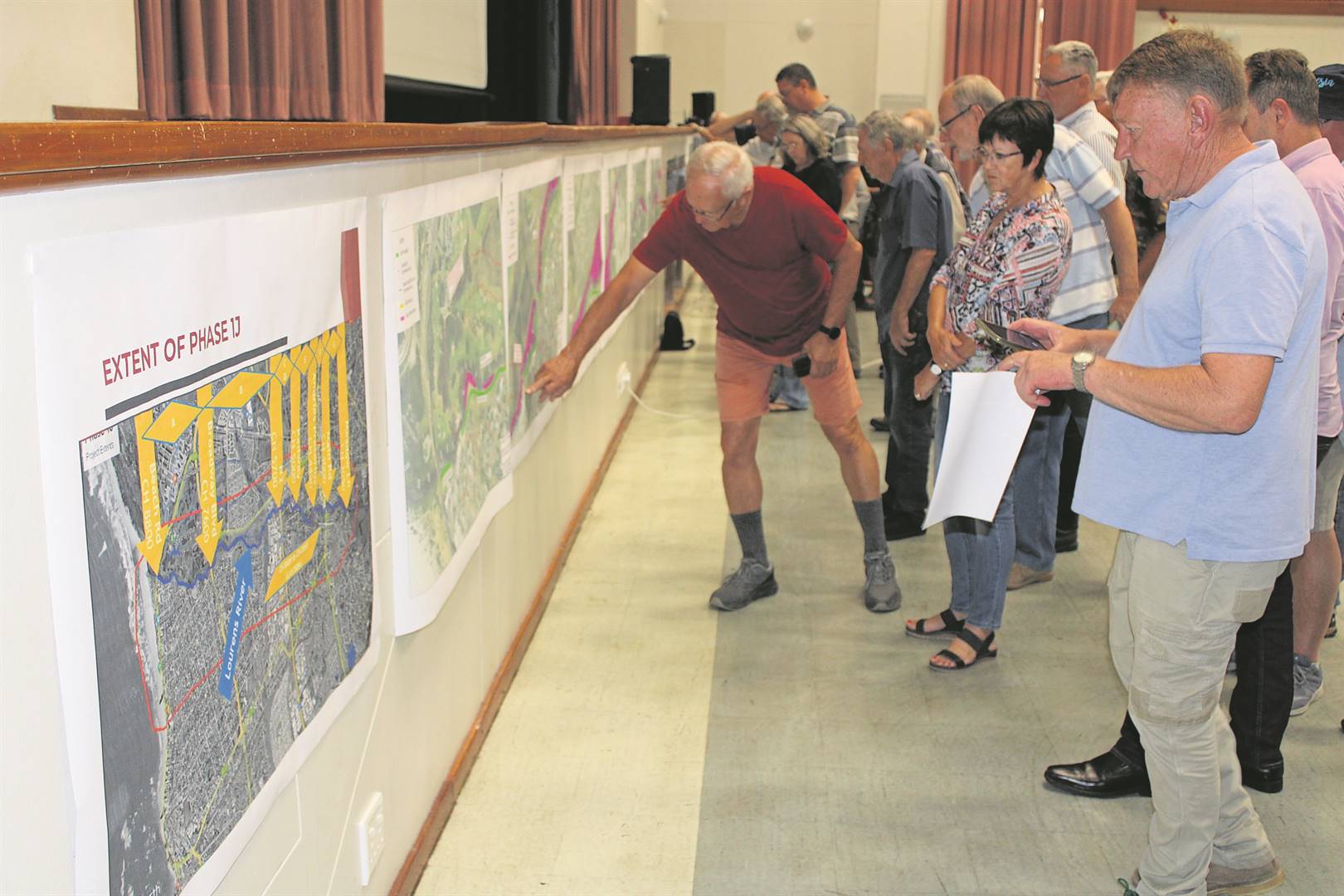 Various maps illustrating the locations of construction sites and affected areas were erected at the public meeting as the City of Cape Town, in conjunction with members of the Lourens River Catchment Forum, the contractors and the consulting engineers invited members of the public to study the maps before the meeting.