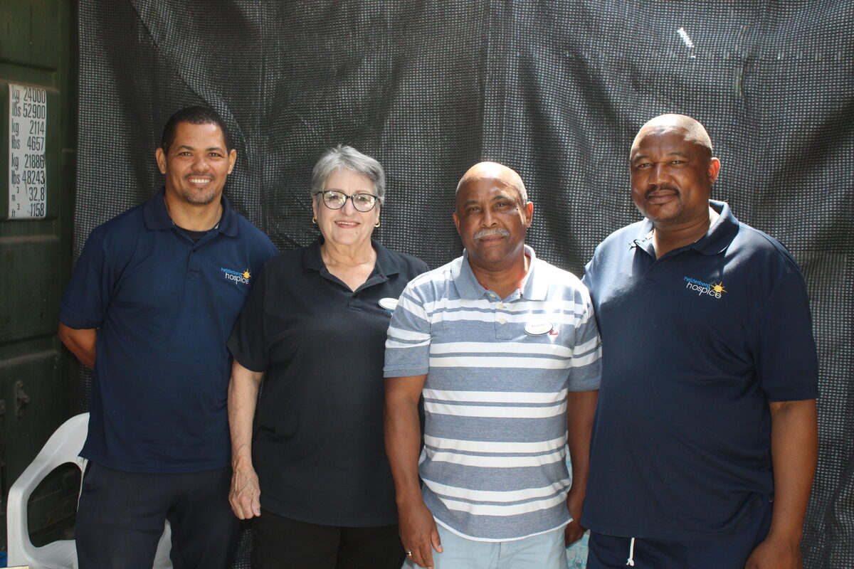 The Helderberg Hospice shop team: Adrian Roberts, Trudie Engelbrecht, Arnie Fisher and Lucas Thintelo.