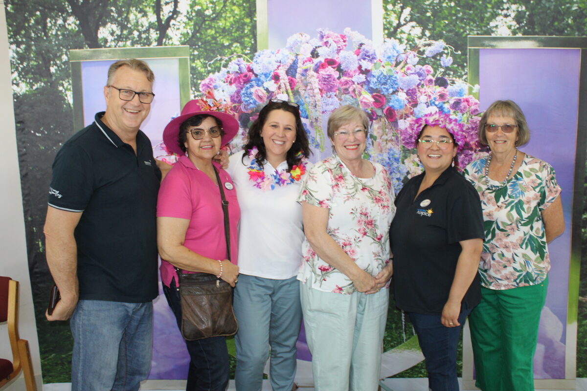 Showing their support for Helderberg Hospice’s annual floral event (from left) are Dawid Pfaff, Karin Gordon, Helen Law-Morris, Susan Gray, Celestine van der Merwe and Jennifer Castle.