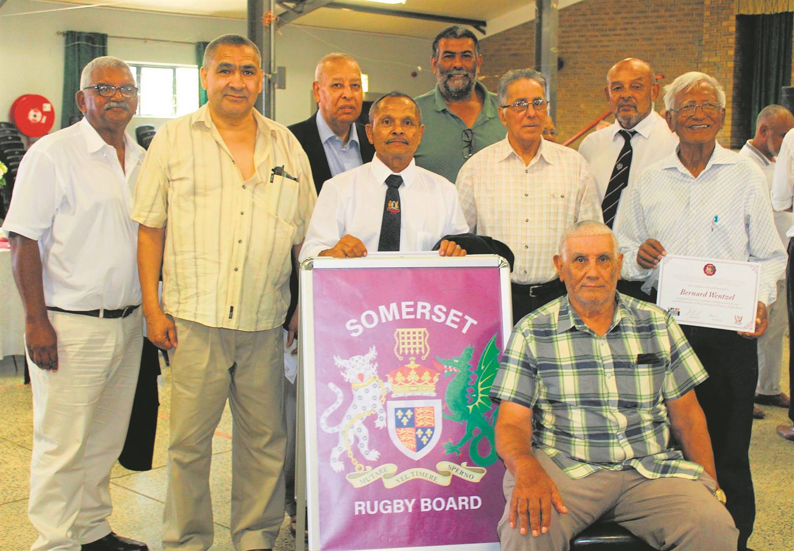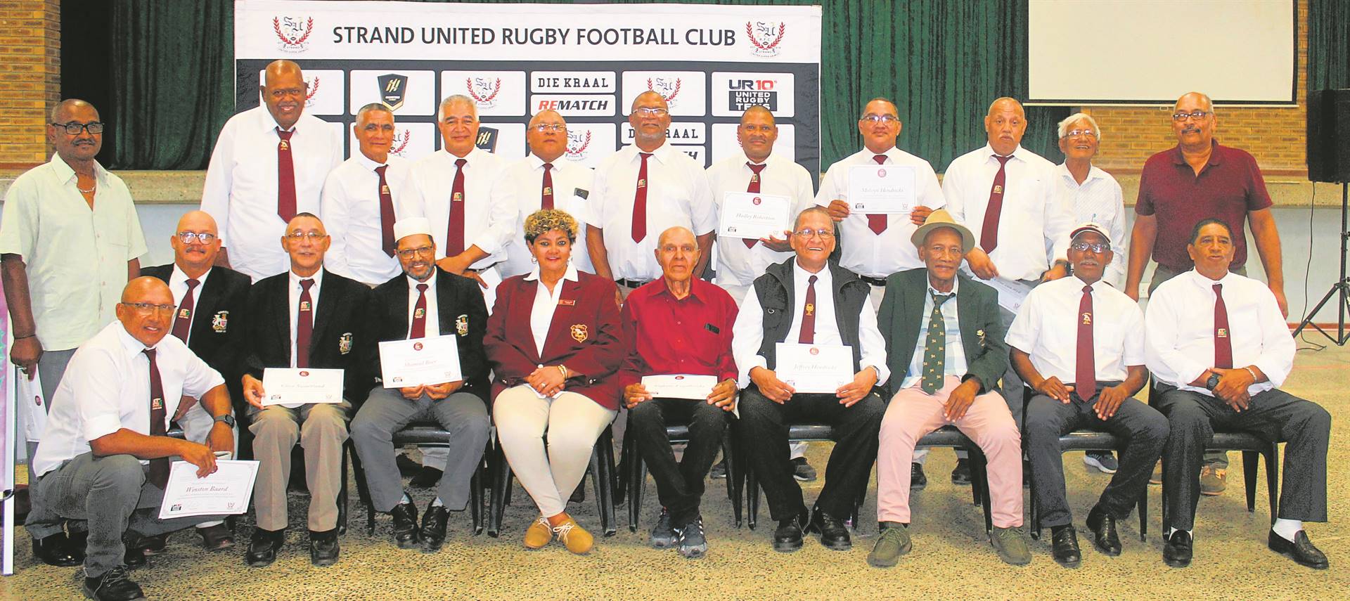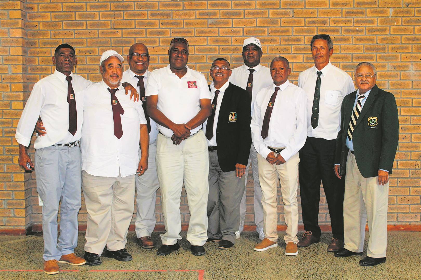 Agter (van links) is Mervyn Rose, Shamiel la Meyer, Bruce Stewart, Mornay Simons, Smith Petersen, Hadley Robertson, Clive van Wyk, Bernard Wentzel, Norman Arendse; (voor) Harold van Reenen, Winston Baard, Deon Isaacs, Clive Swartland, Shamiel Boer, Janine de Lange, Naftalie Engelbrecht, Jeffrey Hendricks, Mikey Fisher, George Fisher en Reuben Riffel.