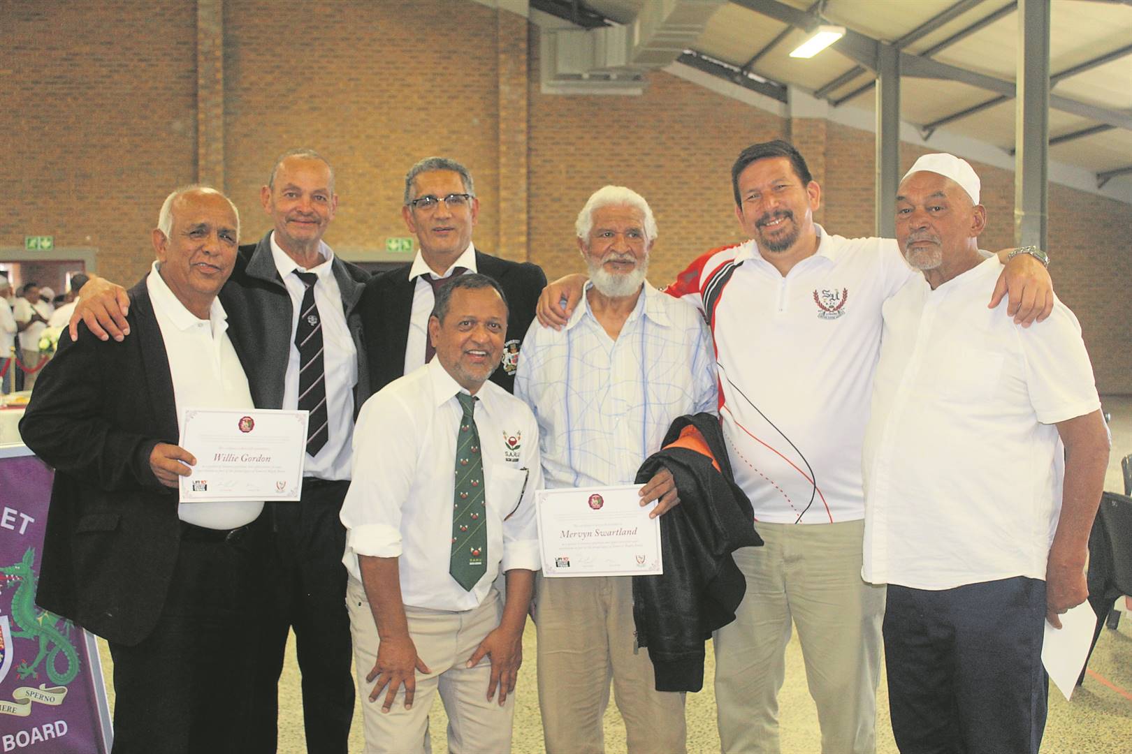 Rafeeq de Vos, Anthony Jackson, Simon Isaacs, Abubaker Wantza, Kevin Eyman, Warren Wilters en Japie Flaendorp.