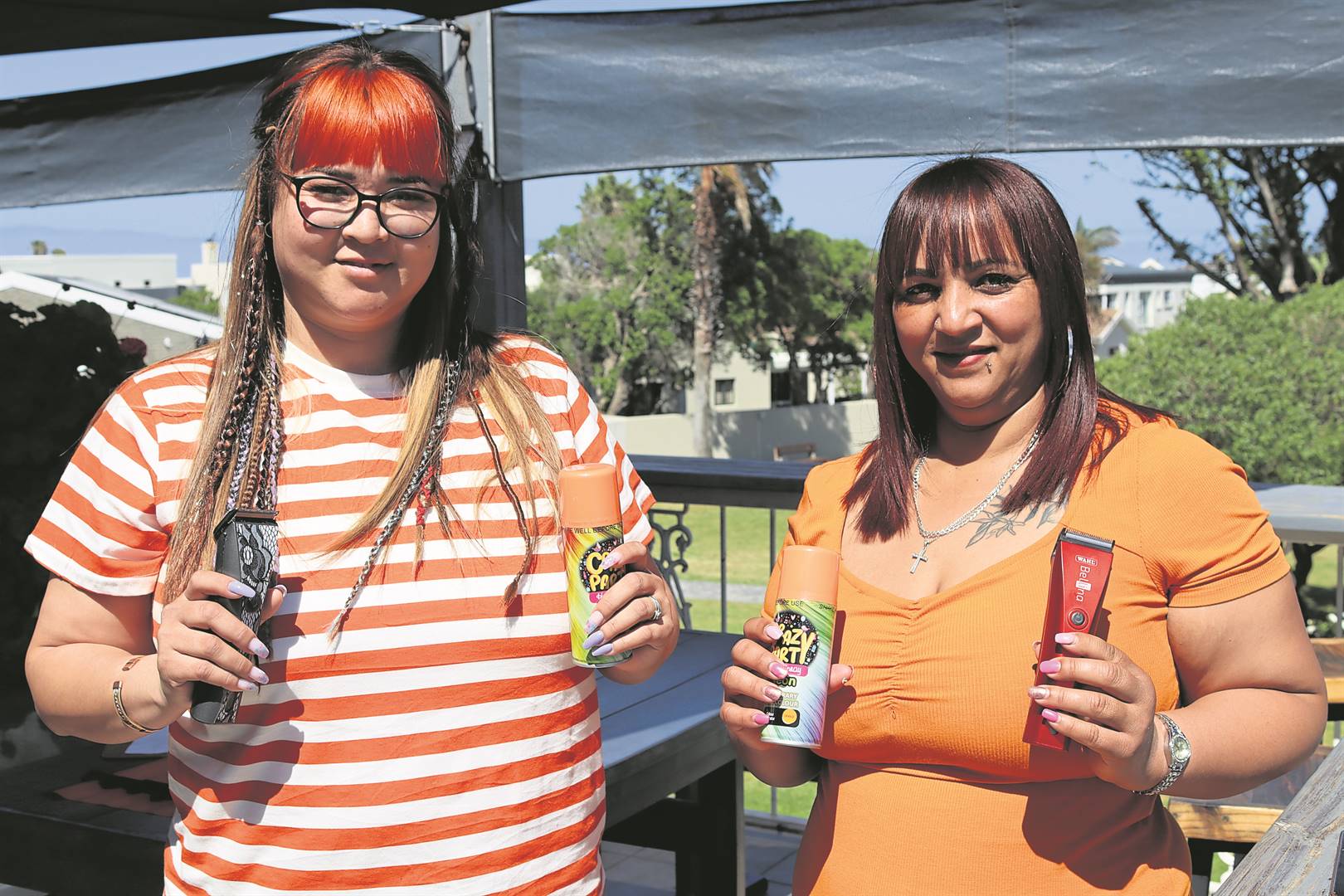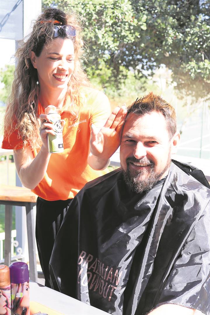 Salon Elan se Mandy Cloete en Alzaine Davids het gholfers wat dapper genoeg was om hul hare te laat sproei of skeer, met die uitdaging gehelp.