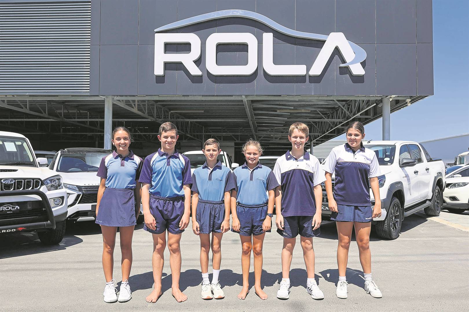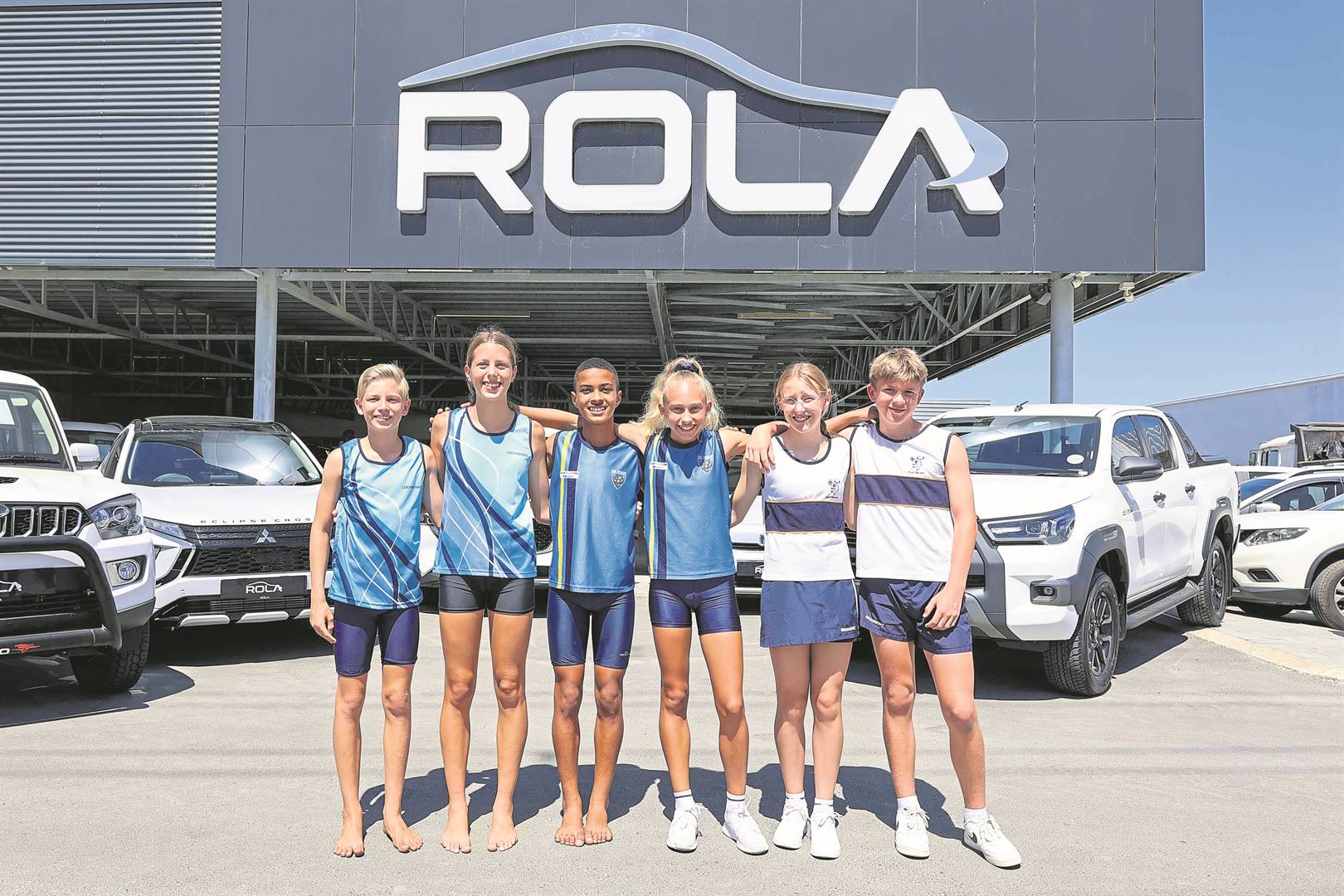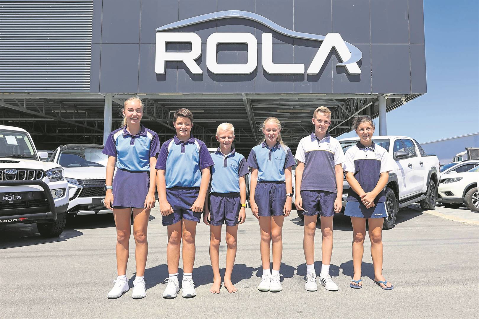 Die atletiek-, tennis- en swem-kapteins van die Laerskool De Hoop, Beaumont Primary School en die Laerskool Lochnerhof is gereed om hul spanne tydens vanjaar se Rola-atletiek-interskole-kragmeting te lei. By hulle is die skole se onderskeie atletiekhoofde en verteenwoordigers van die borg, Rola Motors.
